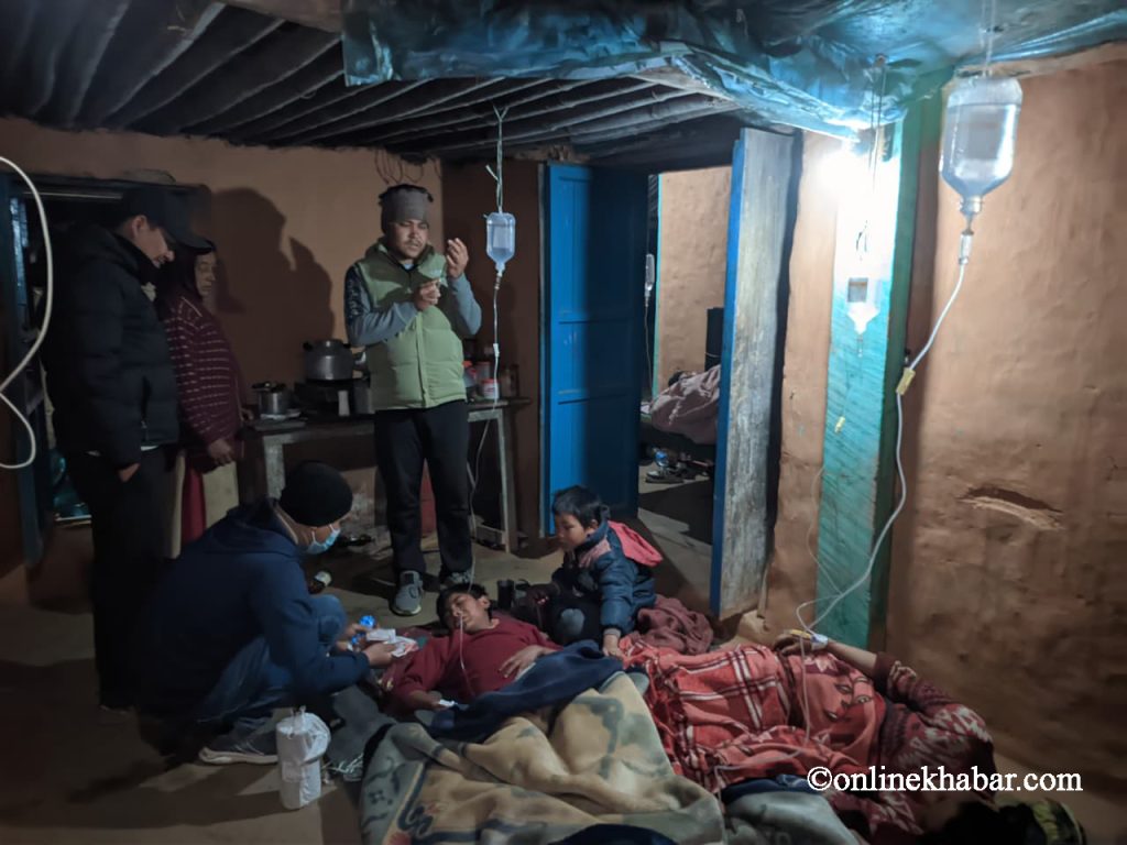 बेहुला र बेहुलीसमेत बिरामी परेका छन् । बिरामी परेका स्थानीयको उपचारका लागि गाउँपालिकाको स्वास्थ्य शाखाको आरआरटी टिम, स्वास्थ्य कार्यालय र जनप्रतिनिधिको टोली खटिएका छन् ।