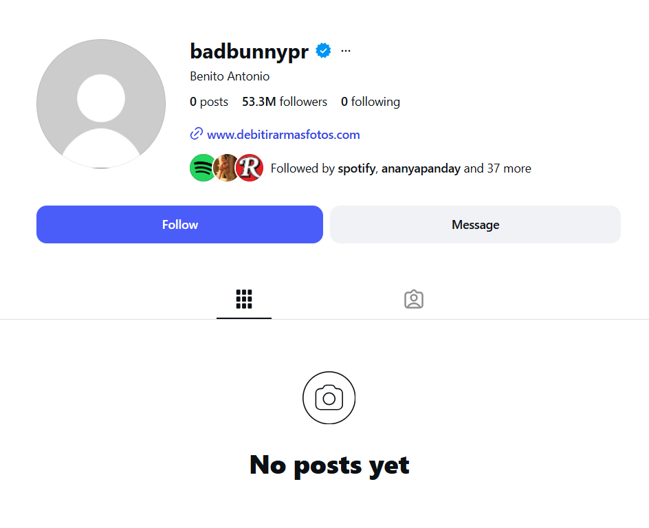 यही विवाद र होहल्लाका बीच ब्याड बनीको इन्स्टाग्राम एकाउन्टबाट सबै पोस्टहरू गायब भएका छन् । उनले आफैँले ती पोस्ट हटाएको अनुमान गरिएको छ । ५३.३ मिलियन भन्दा बढी फलोअर्स भएको उनको प्रोफाइल एकाएक खाली देख्दा सबैजना अचम्ममा परेका छन् ।