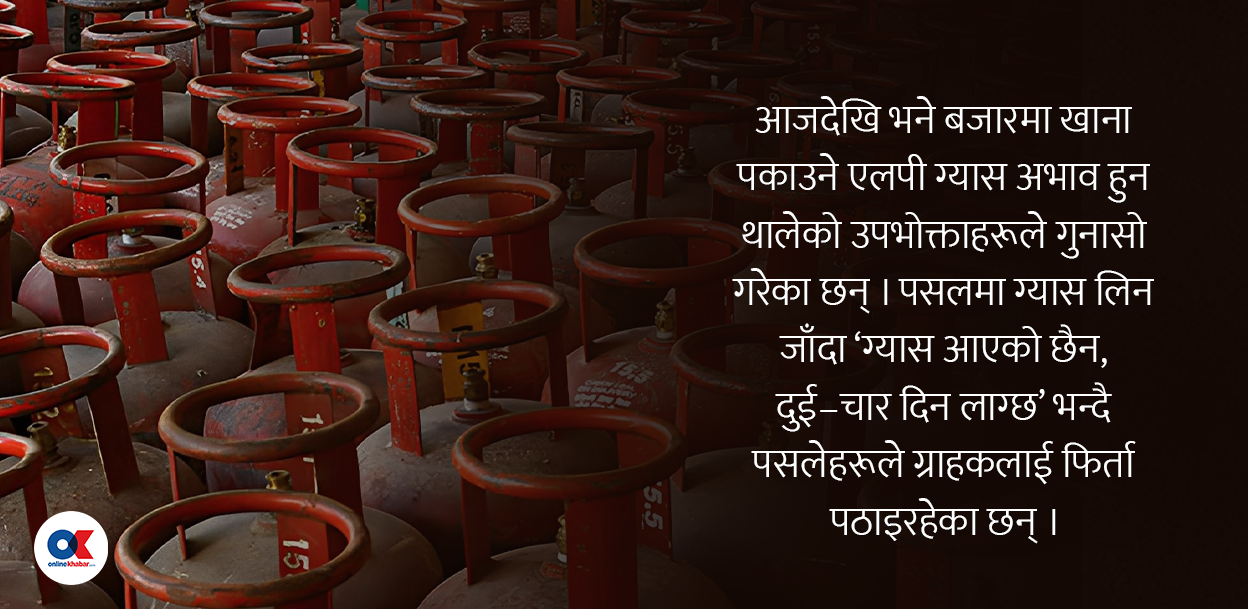 निगमले पछिल्लो समय जारी गरेका हरेक विज्ञप्तिमा ग्यास आयात र उपलब्धतालाई लिएर निकै उत्साहजनक तथ्यांक प्रस्तुत गरिएका छन् । यदि तथ्यांकले भने जस्तै आपूर्ति सहज छ भने आमउपभोक्ता किन टोल–टोलका डिलर छाडेर सिलिन्डर बोक्दै टेकु धाउनुपर्यो ? डिलरका सटरहरू किन बन्द छन् ? र, ग्यास उद्योगीहरूले किन अभावको कृत्रिम वातावरण बनाइरहेका छन् ?