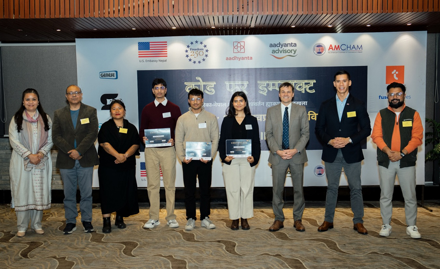 Generated by OK AI. Editorially reviewed.- देशव्यापी 'कोड फर इम्प्याक्ट : यूएस नेपाल टेक इनोभेसन ह्याकाथन' को प्रादेशिक चरण काठमाडौँमा सम्पन्न भएको छ।