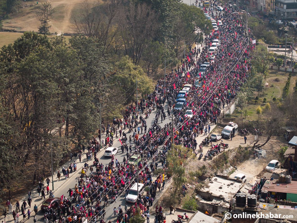झापाबाट त्रिभुवन अन्तराष्ट्रिय विमानस्थल ओर्लेका शाहलाई उनका हजारौं समर्थकले नाराजुलुस गर्दै निर्मल निवास पुर्‍याएका हुन् ।