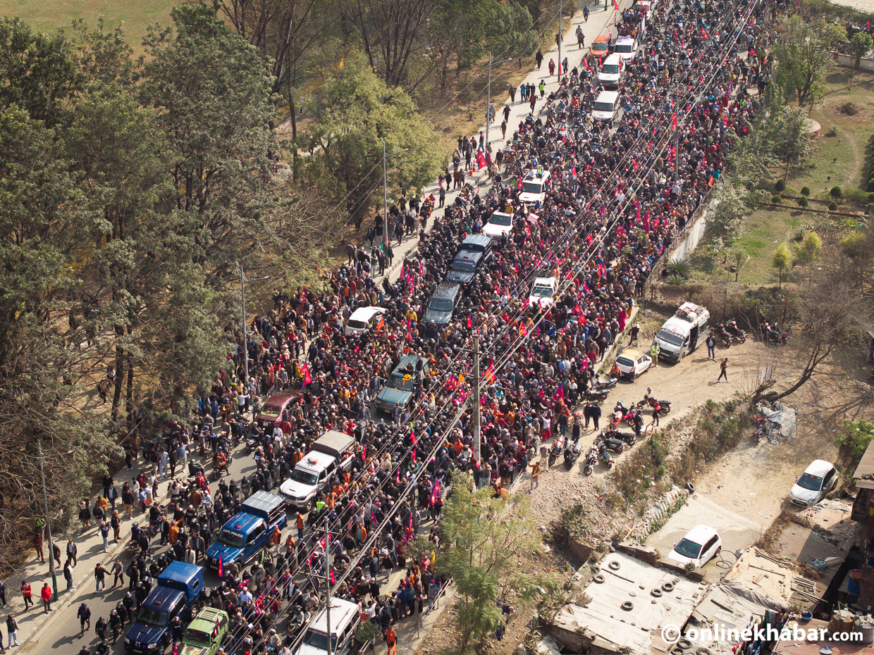 १ फागुन, काठमाडौं । समर्थकबाट घेरिँदै पूर्वराजा ज्ञानेन्द्र शाह निर्मल निवास पुगेका छन् ।
