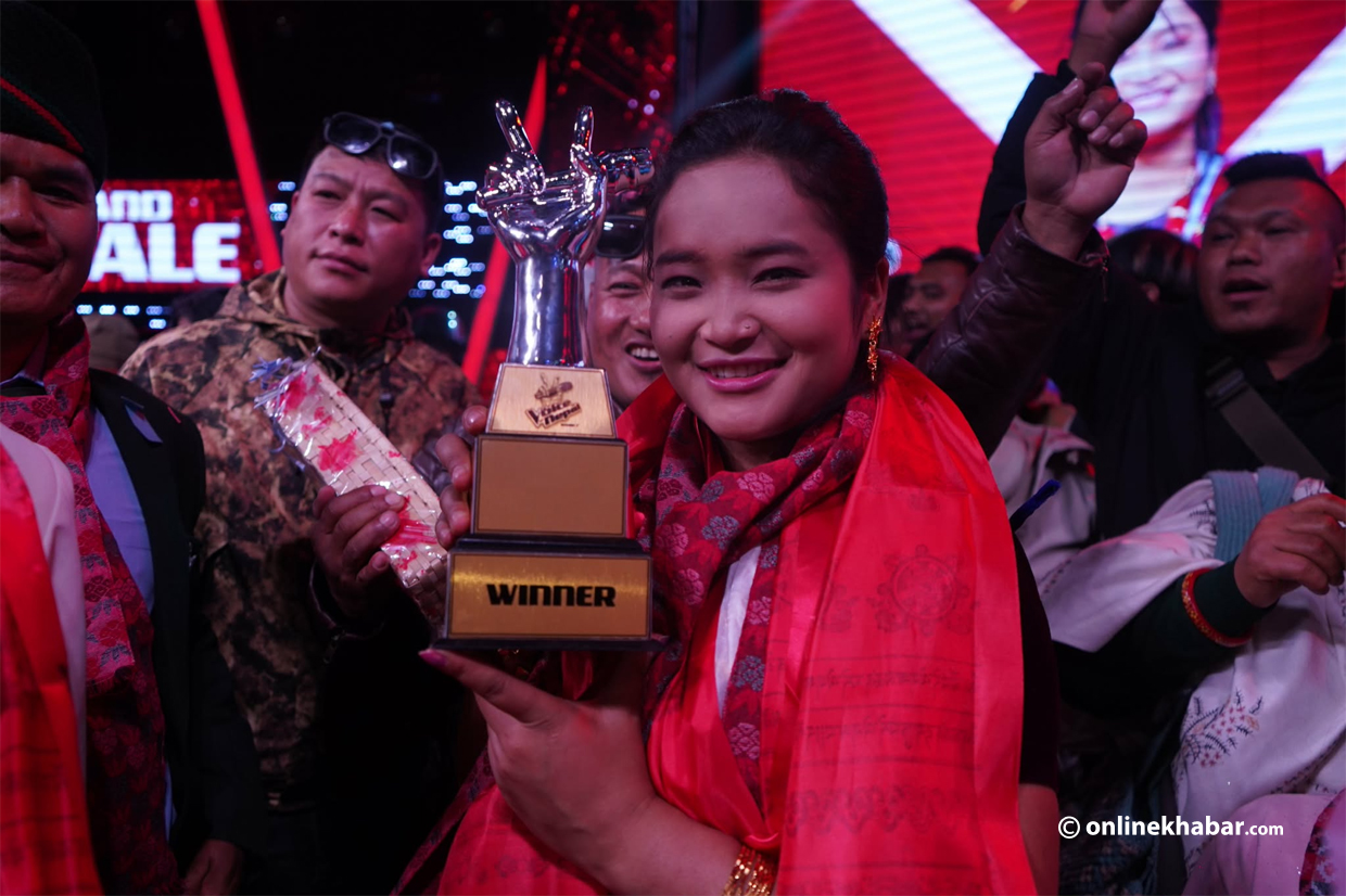 ‘भ्वाइस अफ नेपाल’ को इतिहासमा उपाधि जित्ने उनी पहिलो महिला प्रतिस्पर्धी हुन् । शनिबार आयोजित ग्रान्ड फिनालेमा कोच राजु लामाको टिमकी प्रतिस्पर्धी उनले उपाधि उचालिन् ।