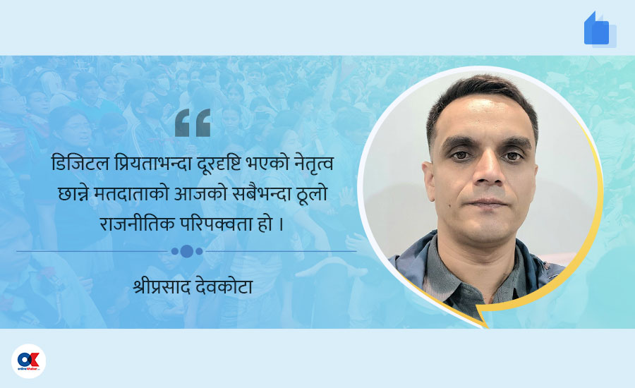 डिजिटल प्रियताभन्दा दूरदृष्टि भएको नेतृत्व छान्ने मतदाताको आजको सबैभन्दा ठूलो राजनीतिक परिपक्वता हो। मत कुनै नेताको सामाजिक सञ्जालको प्रियता होइन, उसको नैतिकता र पारदर्शिता हेरेर दिनुपर्छ।