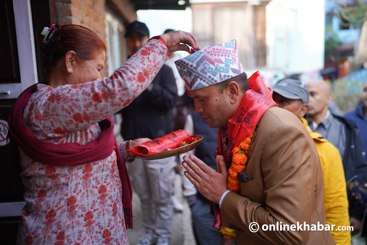 लामटाङ गल्लीमा घर रहेकी एक वृद्ध महिला मतदाताले टीका लगाएर जितको शुभकामनासहित उम्मेदवारसँग आफ्नै पारिवारिक समस्याको समाधान गरिदिन आग्रह गरिन् । उनले भनिन्, ‘जित्नुस्, आशिर्वाद छ । मलाई घर नयाँ बनाइदिनु होला ।’