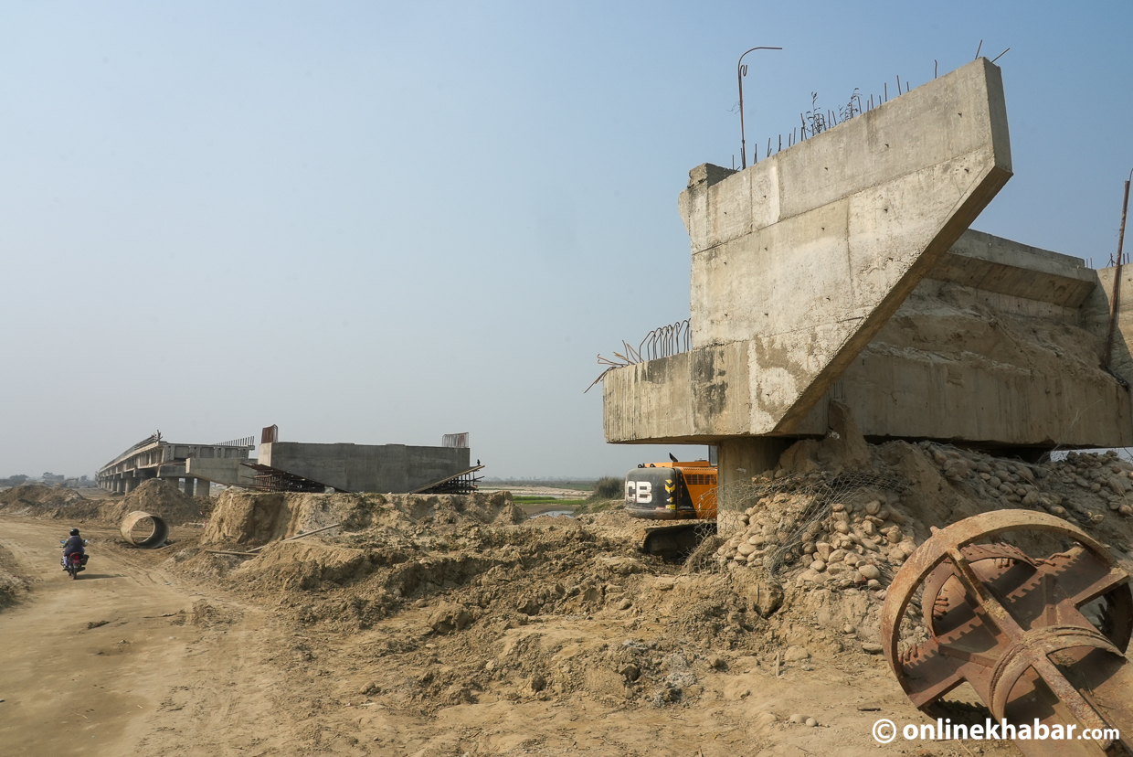 १२ वटा पिलरमा बनेको ४७० मिटर लामो पुलको एउटा पिलर भासिएकाले निर्माण ढिलो भएको भने होइन । तीन वर्षमा बन्नुपर्ने पुल १० वर्षसम्म अलपत्र थियो। २०७८ सालमा एकाएक पिलर भासिएपछि दुईवटा स्ल्याब ढल्किएका हुन् ।