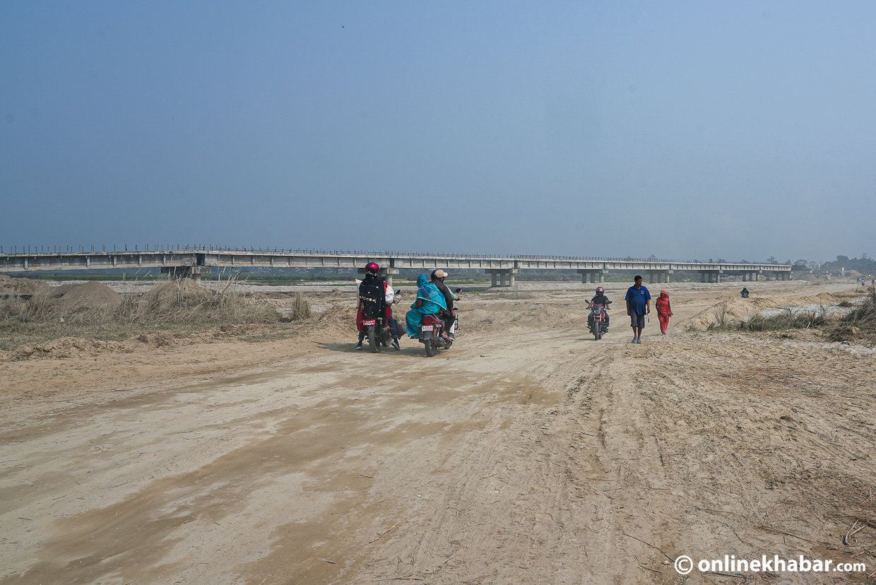 मङ्गलबार दिउँसो कमला नदीको निर्माणाधीन पुलनजिकैको डाइभर्सन बाटोमा उभिँदा कयौँ यात्रुहरू धुलो र अप्ठेरो बाटोबाट कमला नदी ओहोरदोहोर गरिरहेका थिए ।
