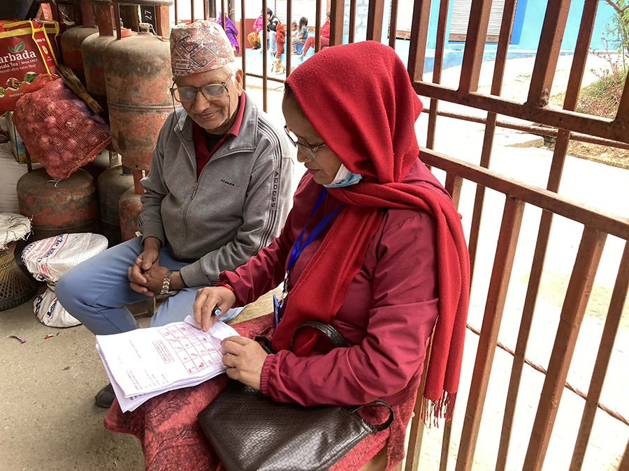 बागलुङमा घर-घरमा पुगेर मतदान गर्न सिकाउँदै सहजकर्ता
