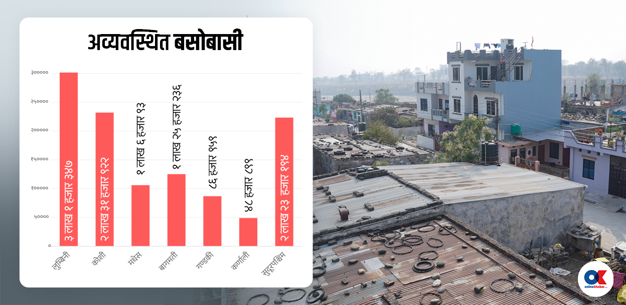 सुकुम्बासी र अव्यवस्थित बसोबासी देशभरी १२ लाख ७१ हजार ५५७ परिवार छन् । पछिल्लो तथ्यांक अनुसार गत भाद्र मसान्तसम्म ९६ हजार ३३९ भूमिहीन दलित, एक लाख ७५ हजार १०९ भूमिहीन सुकुम्बासी र ९ लाख १४ हजार ६१८ परिवार अव्यवस्थित बसोबासी छन् । यी मध्ये ११ लाख ५१ हजार ४०१ परिवारको तथ्यांक भूमि समस्या समाधान आयोगको भू–सूचना प्रणालीमा लगत संकलित छ ।
