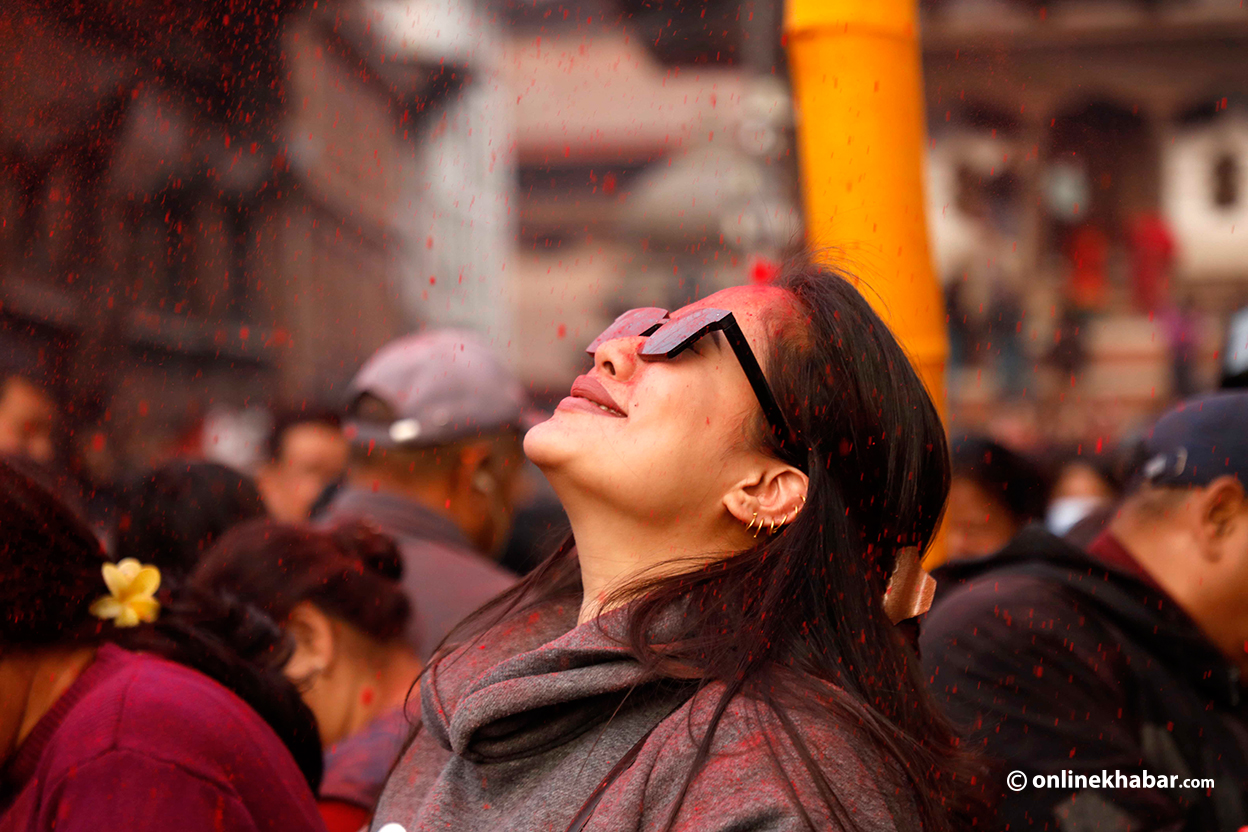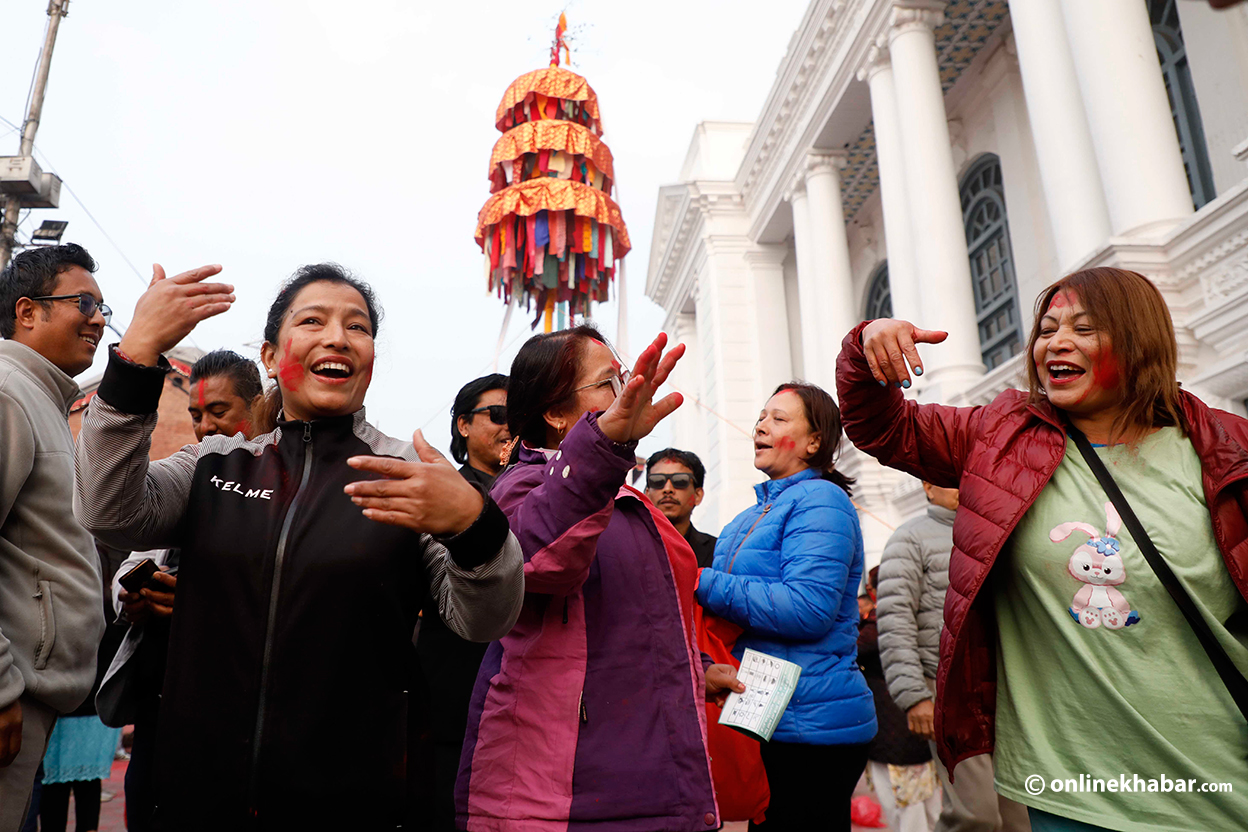 चीर ठड्याएको दृष्य हेर्न बसन्तपुर दरबार क्षेत्रमा स्थानीय भेला भएका थिए । उनीहरुले एकअर्कालाई अबिर दलेर खुसीयाली मनाएका छन् ।