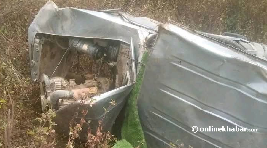 १२ फागुन, रोल्पा । दाङको घोराहीदेखि रोल्पाको परिवर्तन गाउँपालिकाको बागमारा आउँदै गरेको जिप दुर्घटनामा परेको छ । मंगलबार बिहान रुन्टीगढी गाउँपालिका–५ खुम्बास भन्ने स्थानमा जिप दुर्घटना भएको हो ।