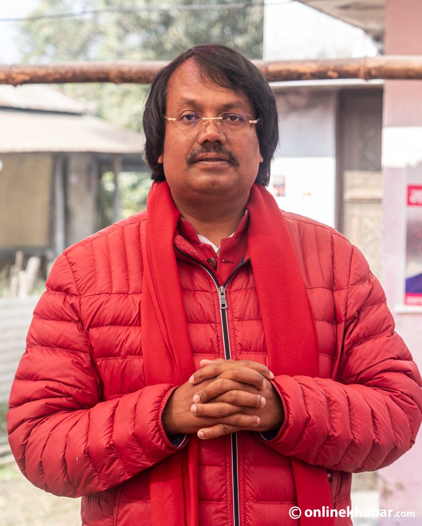 १२ फागुन, राजविराज (सप्तरी) । सदरमुकाम राजविराजको नागेश्वर चोकबाट उत्तरतिर जनमत पार्टीका अध्यक्ष समेत रहेका उम्मेदवार सिके राउतको सम्पर्क कार्यालय छ । त्यो कार्यालय वरपर मानिसहरूको बाक्लो चहलपल हुन्छ । उम्मेदवारका पोस्टर, पम्पलेटहरू टाँगिएका छन् । ती पम्पलेटहरूको रंग छ- गुलागवी । कार्यालयमै सहयोग गर्ने केही कार्यकर्ताहरू पनि गुलावी रंगकै टिसर्ट लगाएका भेटिन्छन् ।