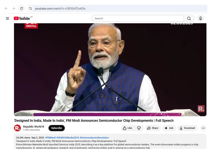 यो फोटो सेमिकोन इन्डिया २०२५ मा भारतीय प्रधानमन्त्री नरेन्द्र मोदीले सम्बोधन गर्दैगर्दाको भएको विवरणमा लेखिएको छ।