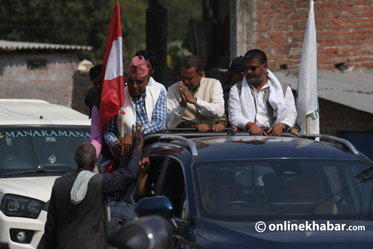 यसैक्रममा चुनावी रिपोर्टिङका क्रममा अनलाइनखबरको टोली सोमबार बिहान क्षेत्र नम्बर १ मा पुग्यो । पूर्वपश्चिम राजमार्गमा पर्ने बर्दघाटबाट दक्षिणतर्फ जाँदै गर्दा बेलानी नजिकै कांग्रेस कार्यकर्ताको एक समूह घरदैलो गरिरहेको थियो ।