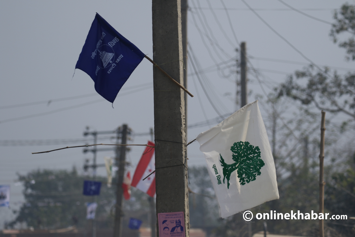 सडकको दायाँ–बायाँ जोड्ने गरी कांग्रेस र रास्वपाले चुनाव चिन्ह र पार्टीका झण्डाहरू डोरीमा गाँसेर आकाशमा लहराएको दृष्य पनि प्रतापपुर गाउँमा देखियो ।