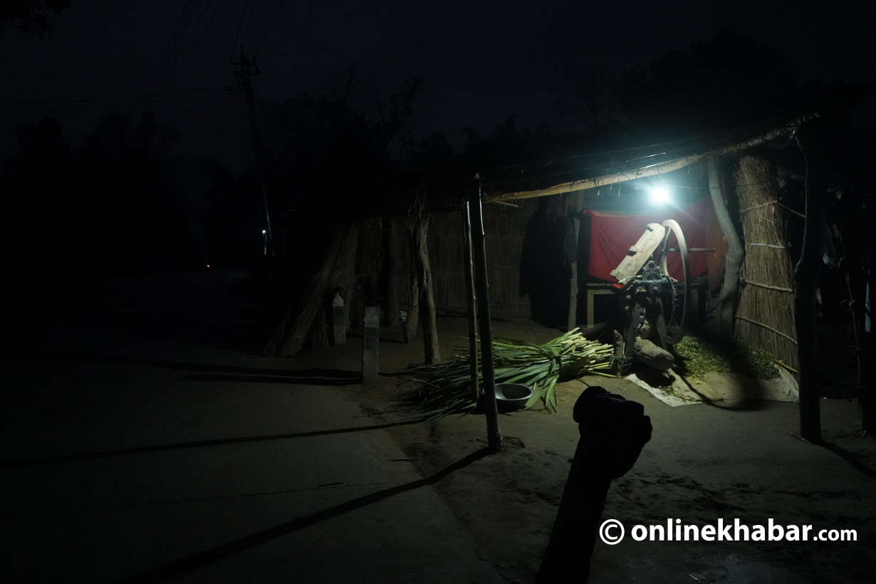 सुस्तामा रहेको सशस्त्र प्रहरीको बोर्डर आउट पोस्ट (बीओपी) पुग्नुअघि ‘थारू टोल’ जाने बाटो नजिकै मराक्षीदेवी तेली छोरीसँगै बिजुलीको उज्यालोमा बसिरहेकी थिइन् । अनलाइनखबरले उनीहरूसँग चुनावबारे जिज्ञासा राख्दै गर्दा ३० वर्षीय भीम केवट झुल्किए ।