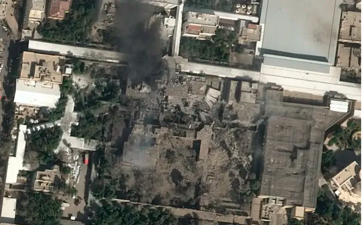 अमेरिका–इजरायलको आक्रमणपछि तेहरानस्थित खामेनीको सुरक्षित कम्पाउन्डमा देखिएको क्षति । खानेमीलाई भने त्यहाँबाट सुरक्षित स्थानमा सारिएको भनिएको छ । तस्वीर साभार : अल जजीरा