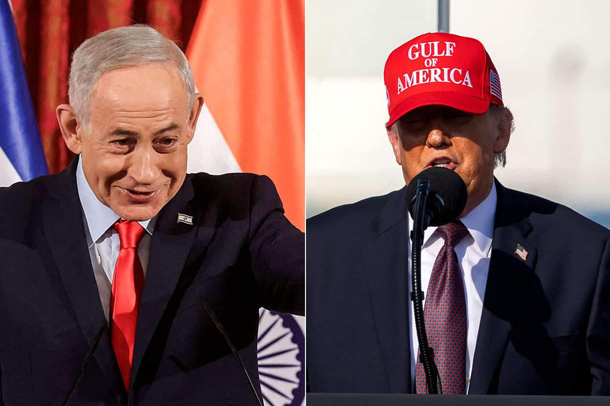 इजरायलका प्रधानमन्त्री बेन्जामिन नेतान्याहु र अमेरिकी राष्ट्रपति डोनाल्ड ट्रम्प । तस्वीर स्रोत: एएफपी/रासस
