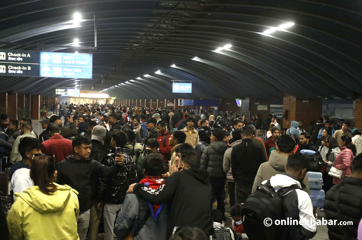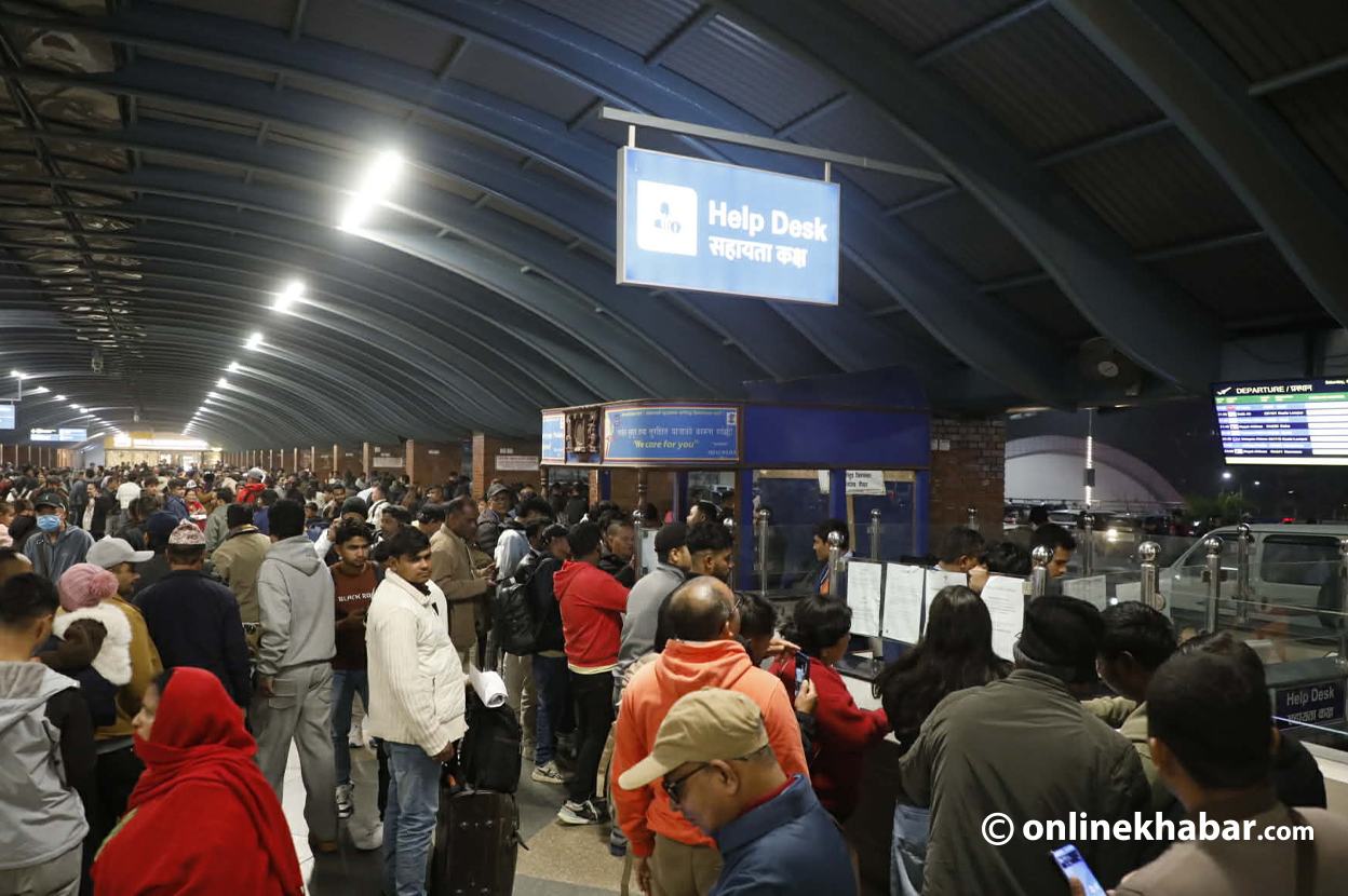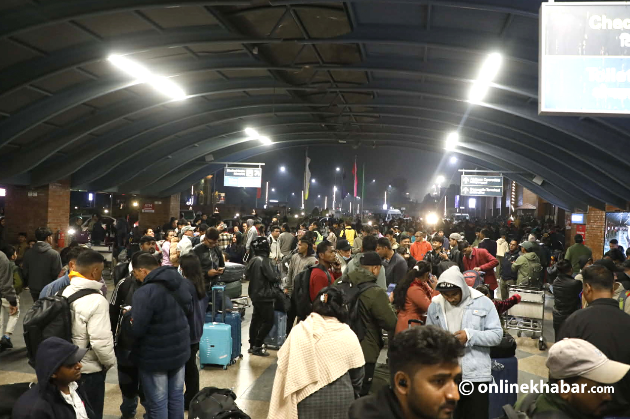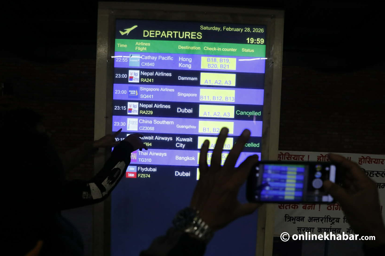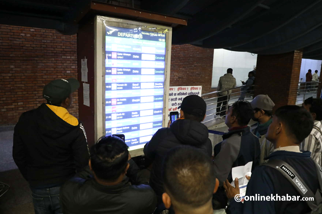 शनिबार दिउँसोदेखि मध्यपूर्वका विभिन्न देशमा जान हिंडेका यात्रुहरू विमानस्थलमा अलपत्र परेका छन् । अहिले विमानस्थलमा ठूलो संख्यामा यात्रुहरूको भीड जम्मा भएको छ ।