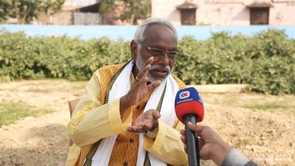 नेपालको सत्ता र संसदीय राजनीतिका खेलाडी मध्येका एक व्यक्ति हुन्- राजेन्द्र महतो । मधेशका मुद्दाहरू भन्दै लामो समय क्षेत्रीय राजनीतिमा रहेका उनी अहिले देशभरका पहिचान पक्षधर शक्तिहरू मिल्नुपर्छ भन्दै राष्ट्रिय मुक्ति पार्टी गठन गरेर चुनावी प्रतिस्पर्धामा होमिएका छन् । सर्लाही–२ बाट ‘जाँतो’ चिन्ह लिएर प्रतिस्पर्धामा उत्रिएका महतोसँग सर्लाहीको ईश्वरपुरमा अनलाइनखबरका दुर्गा खनालले गरेको कुराकानीको सम्पादित अंश :