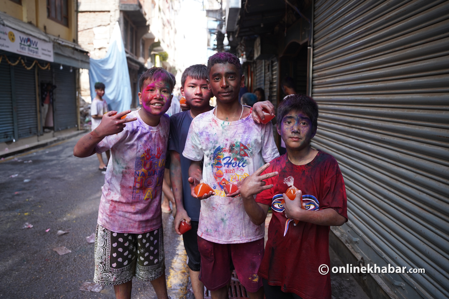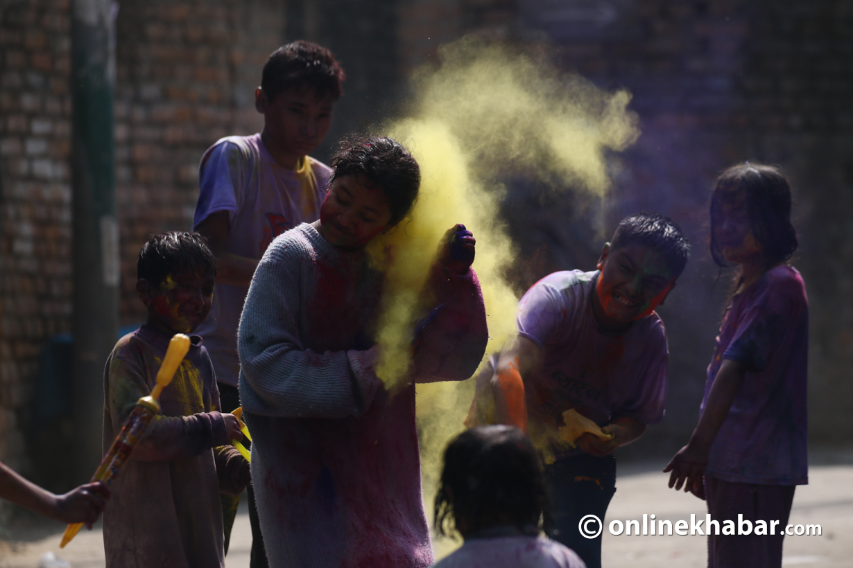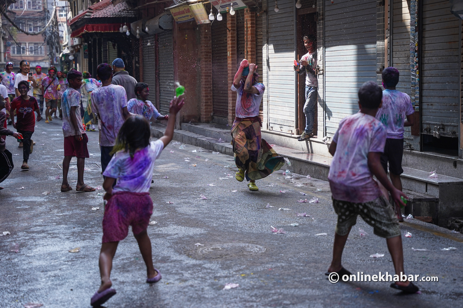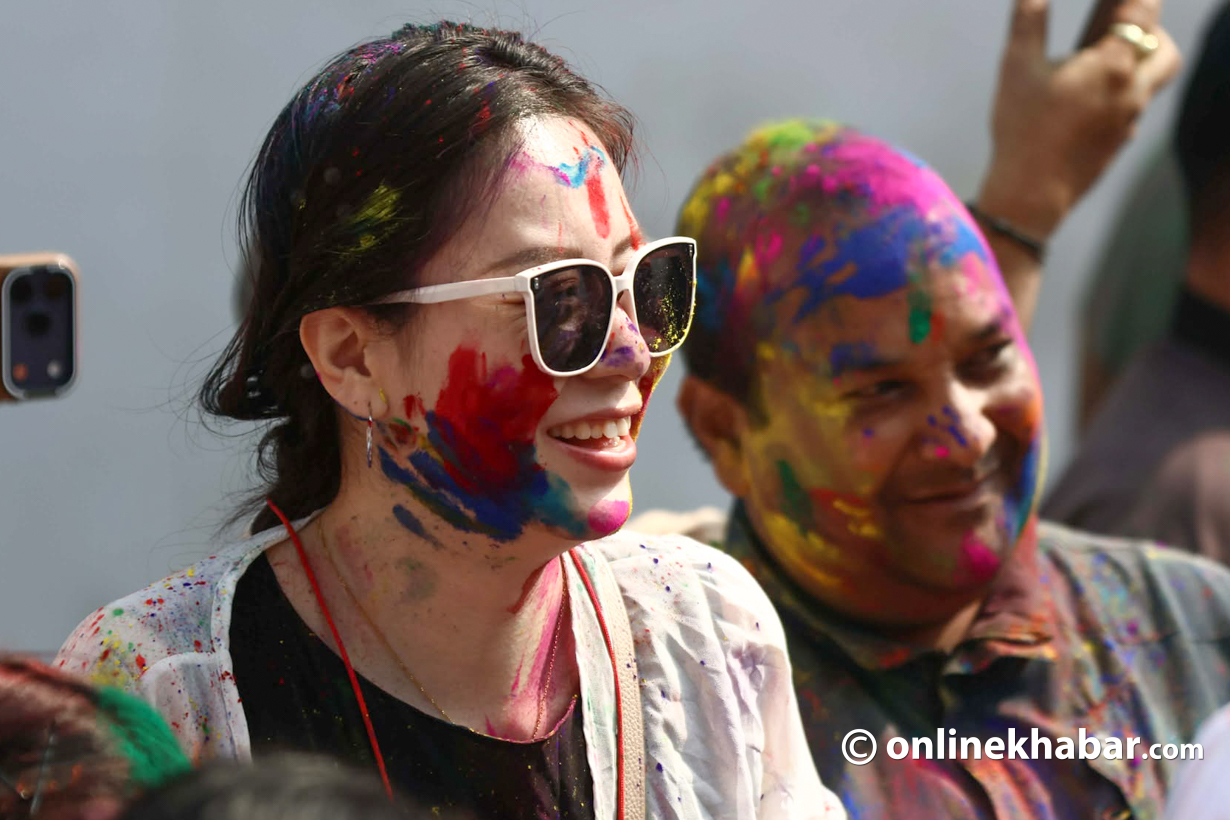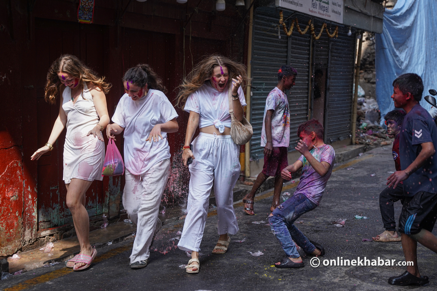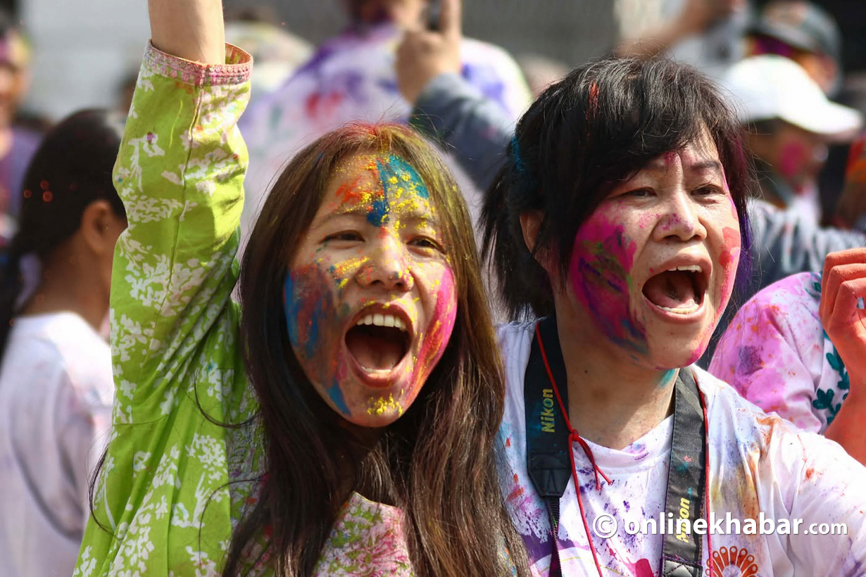 काठमाडौंको वसन्तपुर दरबार क्षेत्र, टुँडिखेल, ठमेल, दरबारमार्गलगायत उपत्यकाका विभिन्न क्षेत्रमा धुमधाम होली मनाइएको छ ।