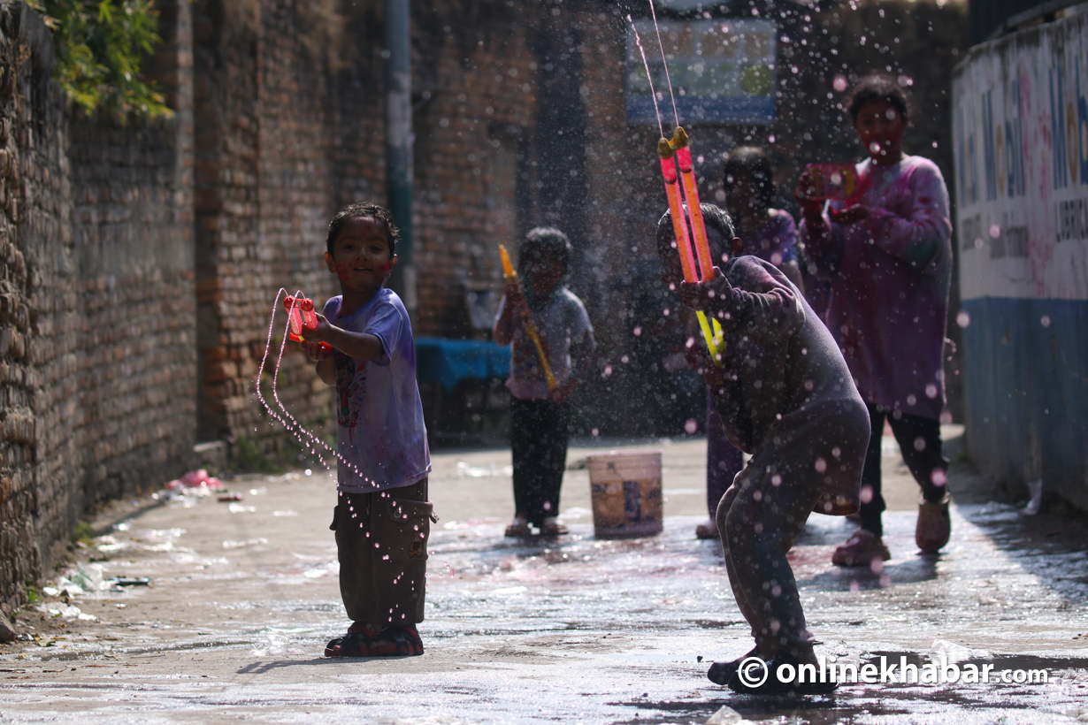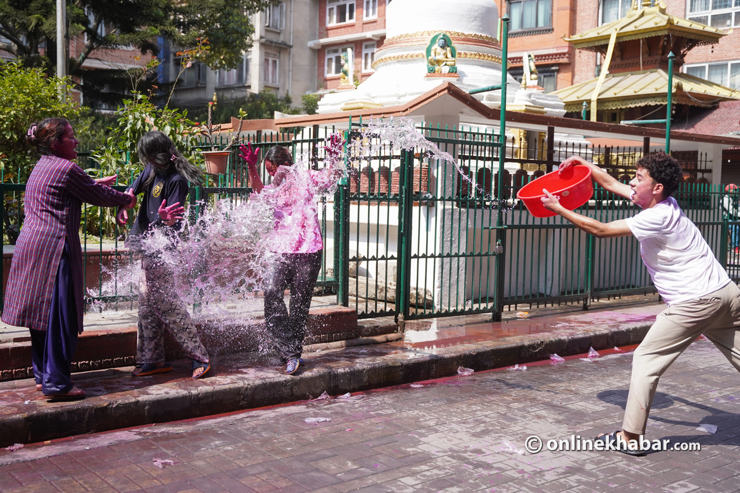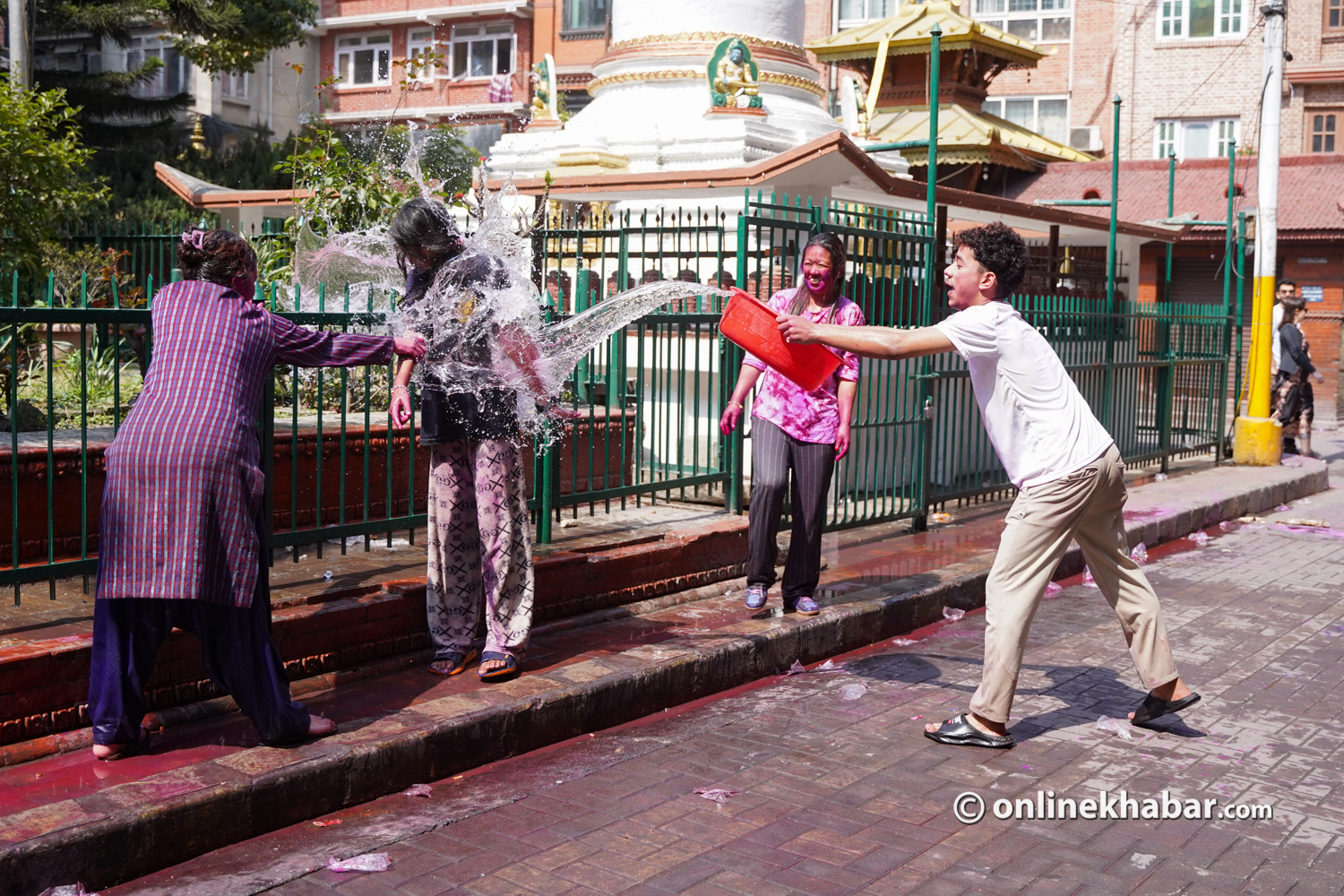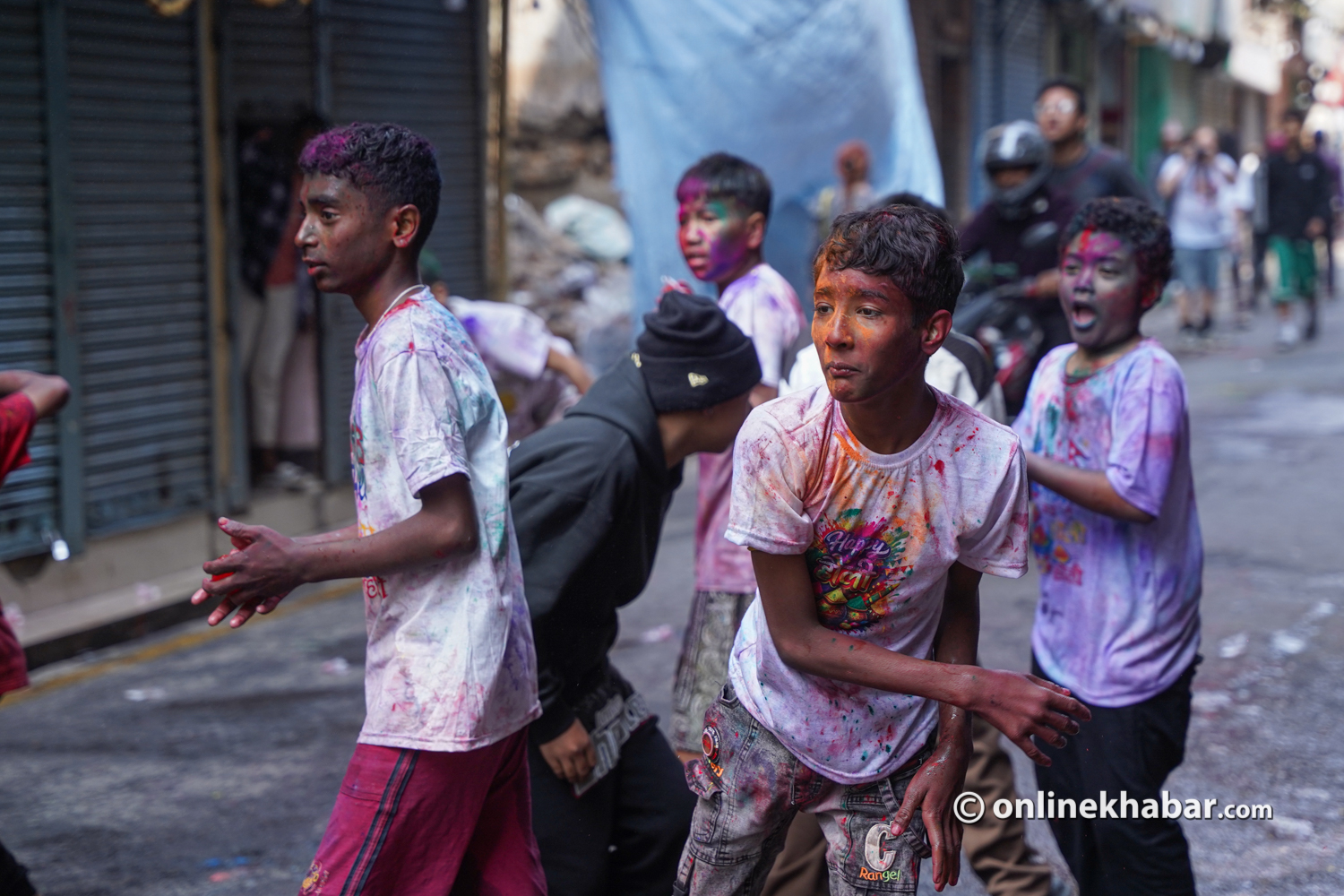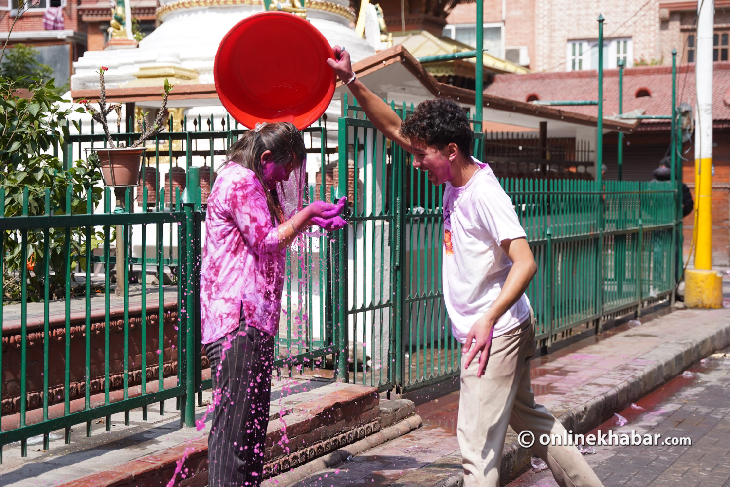 काठमाडौंको वसन्तपुर दरबार क्षेत्र, टुँडिखेल, ठमेल, दरबारमार्गलगायत उपत्यकाका विभिन्न क्षेत्रमा धुमधाम होली मनाइएको छ ।