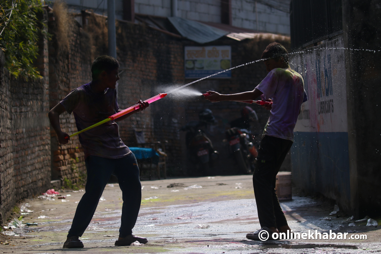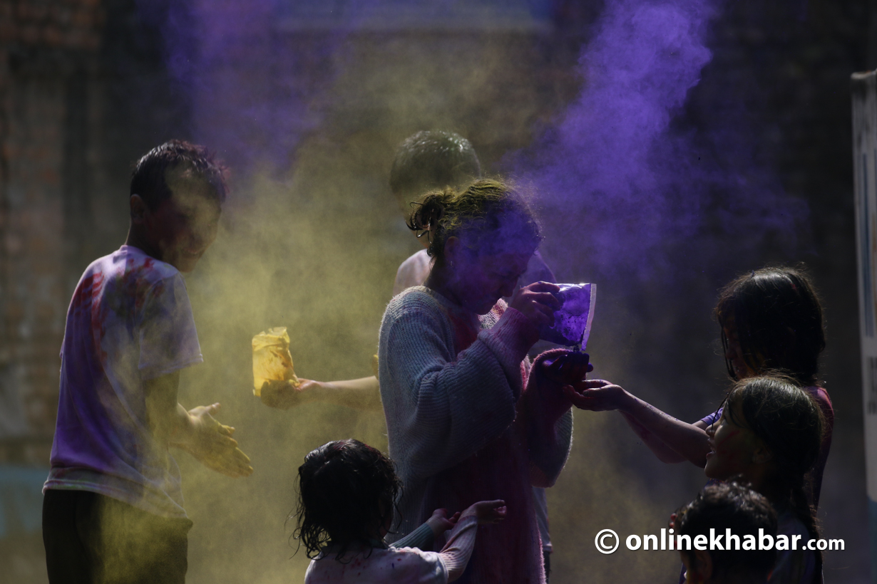 १८ फागुन, काठमाडौं । फागुपूर्णिमा (होली) आज पहाडी र हिमाली जिल्लामा मनाइएको छ । काठमाडौं उपत्यकामा पनि विभिन्न क्षेत्रमा आपसमा रङ दलेर पर्व मनाइएको हो ।