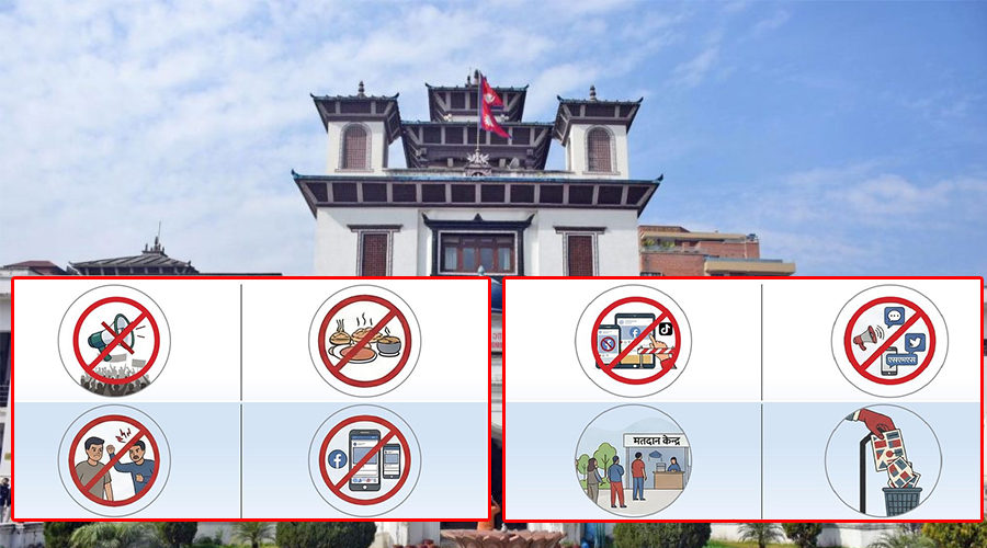 सामाजिक सञ्जाल, अनलाइन, छापा वा अन्य कुनै पनि माध्यमबाट राजनीतिक दल वा उम्मेदवारको पक्ष वा विपक्षमा कुनै सन्देश, सूचना वा प्रचारप्रसार सामग्री पोष्ट वा शेयर गर्न वा गराउनु हुँदैन ।