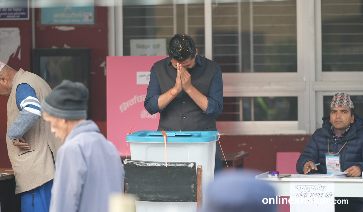 मतपत्र खसालिसकेपछि उनले मतपेटिकामा ढोगेका थिए ।