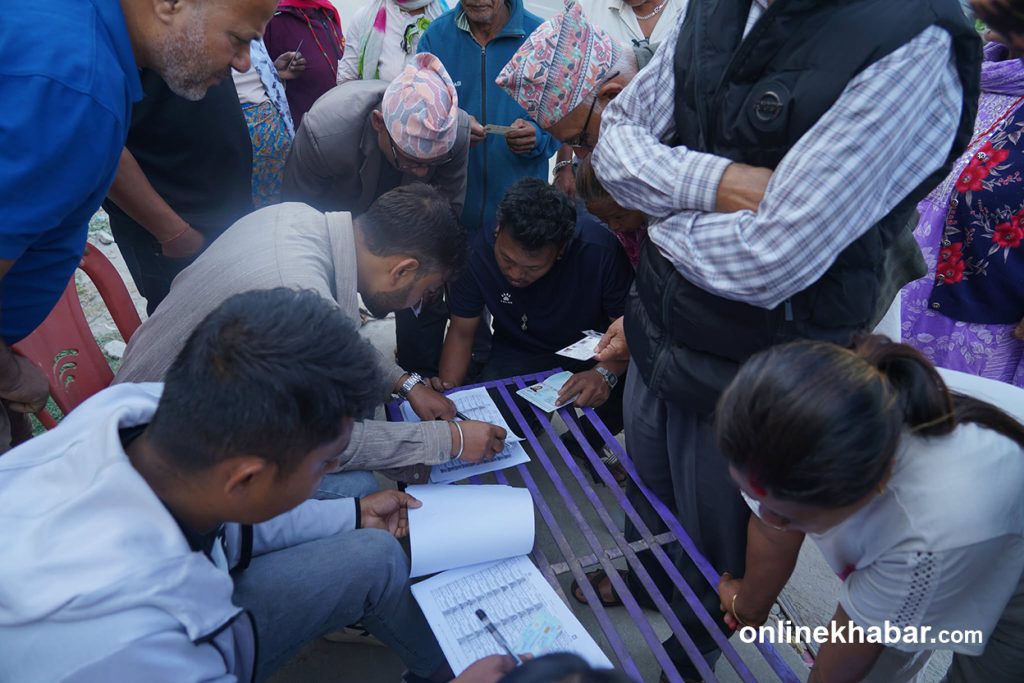 मतदाताहरू भोट हाल्नका लागि मतदान केन्द्रहरूमा लाइनमा उभिएका छन् ।