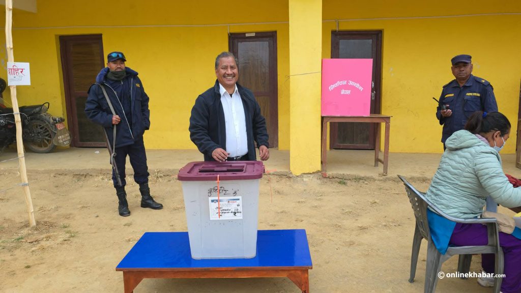 विप्लवले परिवर्तन गाउँपालिका-३ थुनिकोट बाल शिक्षा माविको ‘क’ केन्द्रमा मतदान गरेका हुन् ।