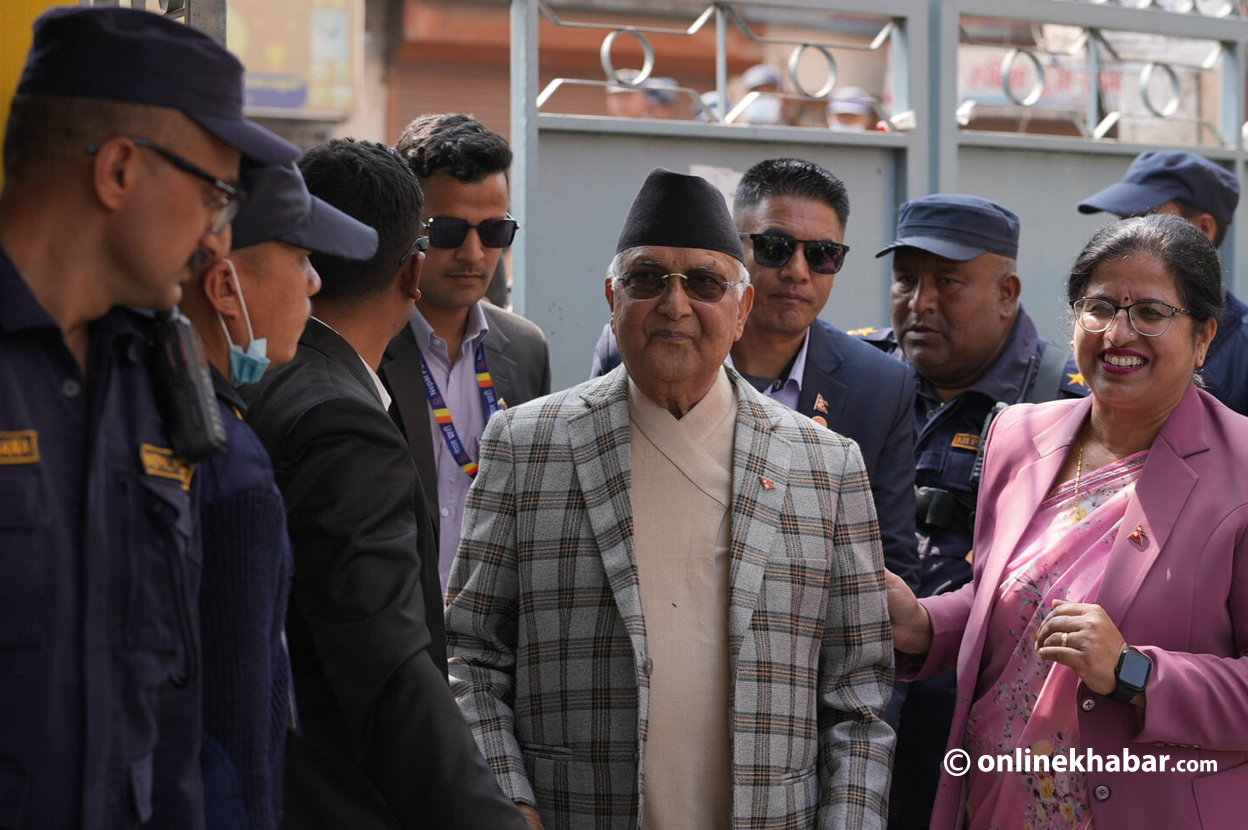 भक्तपुरको बालकोटस्थित महेन्द्र शान्ति विद्यालयबाट पूर्वप्रधानमन्त्री समेत रहेका ओलीले मतदान गरेका हुन् ।