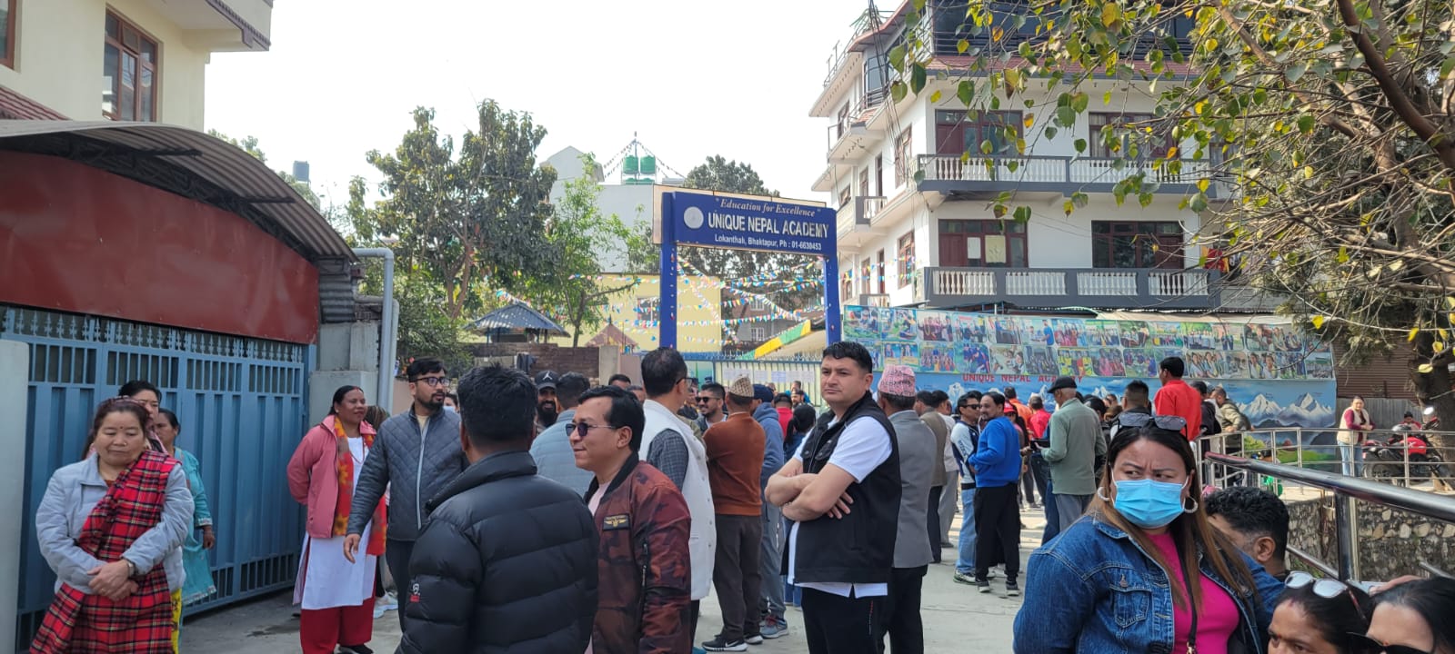 Generated by OK AI. Editorially reviewed.- भक्तपुर–२ निर्वाचन क्षेत्रमा २१ फागुन बिहान ९ बजे युनिक नेपाल एकेडेमीमा मतदाताको बाक्लो चहलपहल देखियो।