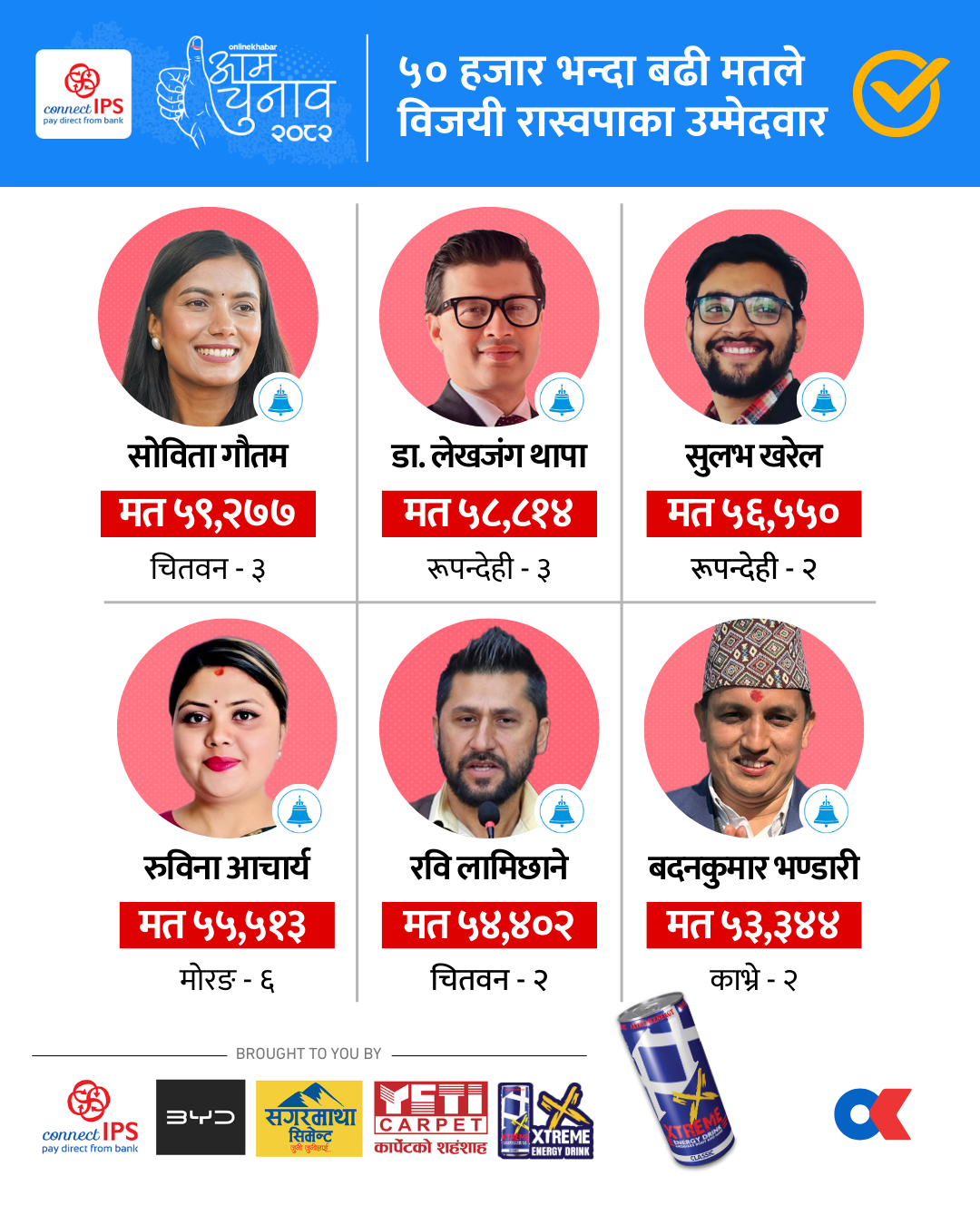 • धर्मराज केसीले ३३ हजार ८९८ मत प्राप्त गरेका छन् भने पृथ्वीसुब्बा गुरुङले १६ हजार ८७६ मत ल्याएका छन्।