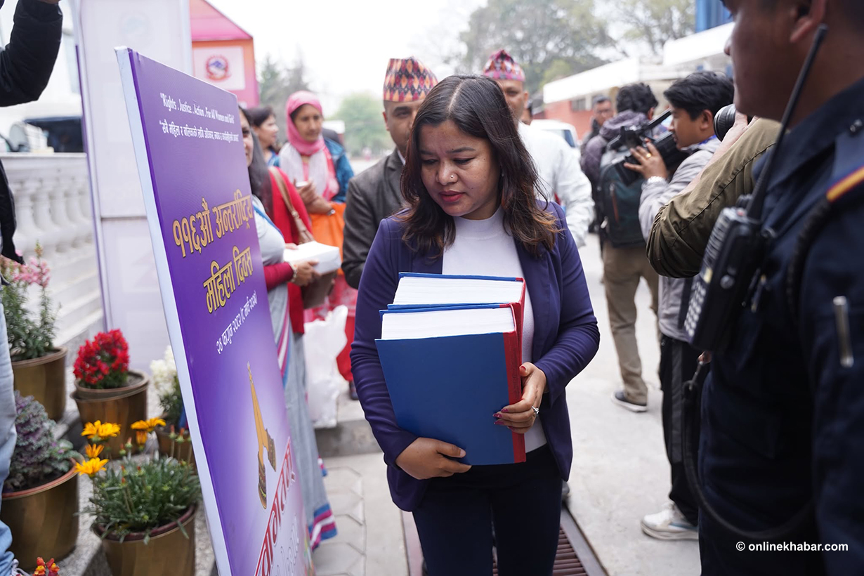 आयोगका कर्मचारीले प्रतिवेदन र कागजातहरु बोकेर कार्यालयभित्र छिरेका छन् र उनीहरुले प्रतिवेदन बुझाएपछि पत्रकार सम्मेलन गर्ने जनाएका छन् ।