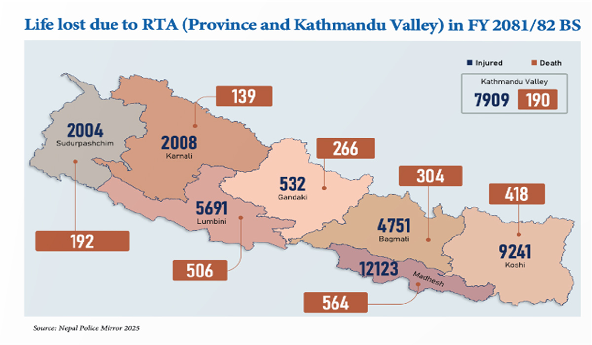 नेपालमा सडक दुर्घटनाबाट हुने मृत्युको संख्या अत्यन्त चिन्ताजनक छ । प्रत्येक वर्ष देशभरि सयौं मानिसहरूले सडक दुर्घटनामा ज्यान गुमाउँछन् । यस्ता धेरै घटनामा गम्भीर मस्तिष्क चोटका कारण ब्रेन डेथ हुने अवस्था आउन सक्छ, जसमा अंगदान सम्भव हुन्छ ।