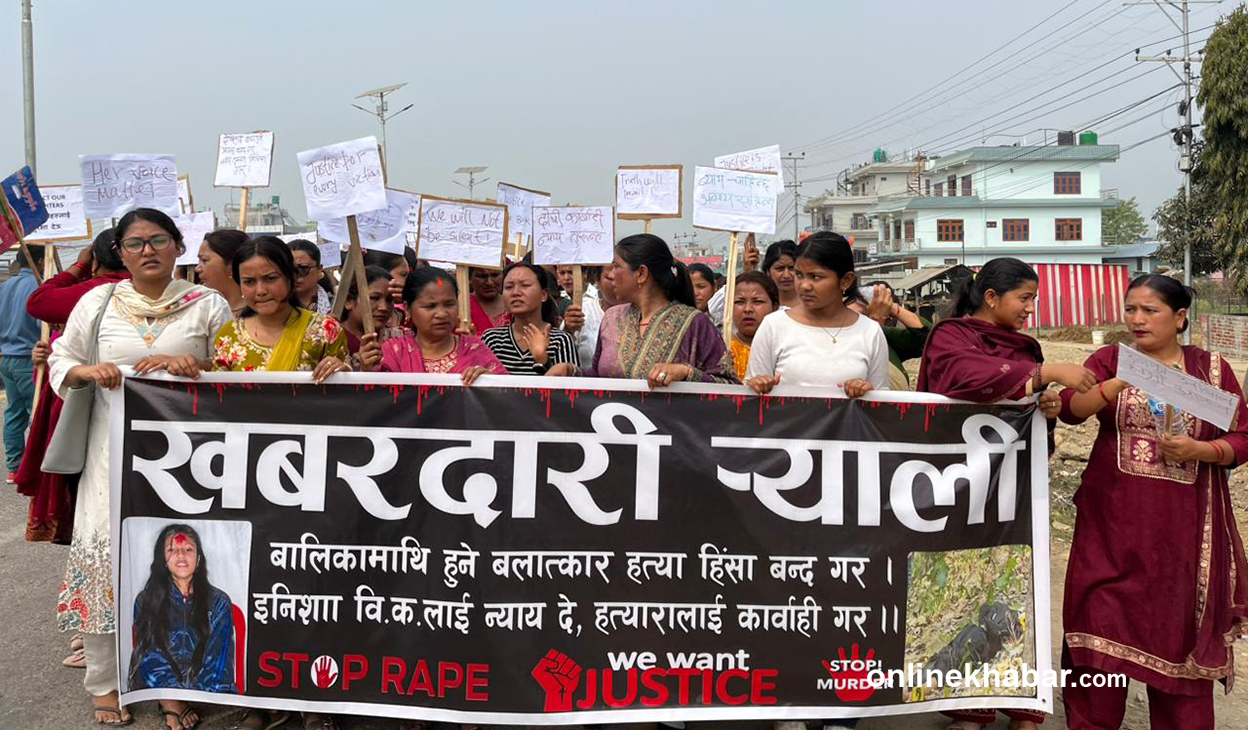 Generated by OK AI. Editorially reviewed.- प्रदेश राजधानी वीरेन्द्रनगरमा इमिसा विकको बलात्कारपछि हत्या भएको भन्दै परिवार र अधिकारकर्मीले निष्पक्ष छानबिनको माग गर्दै प्रदर्शन गरेका छन्।
