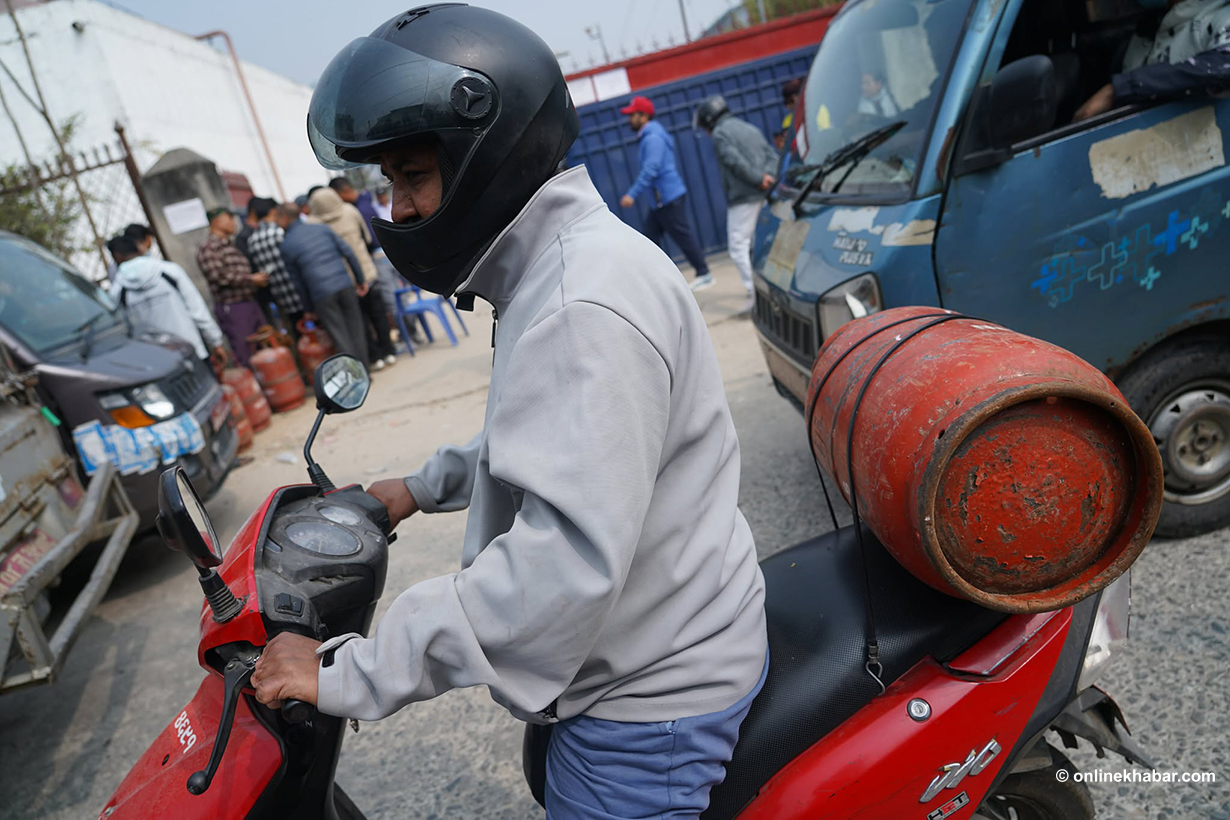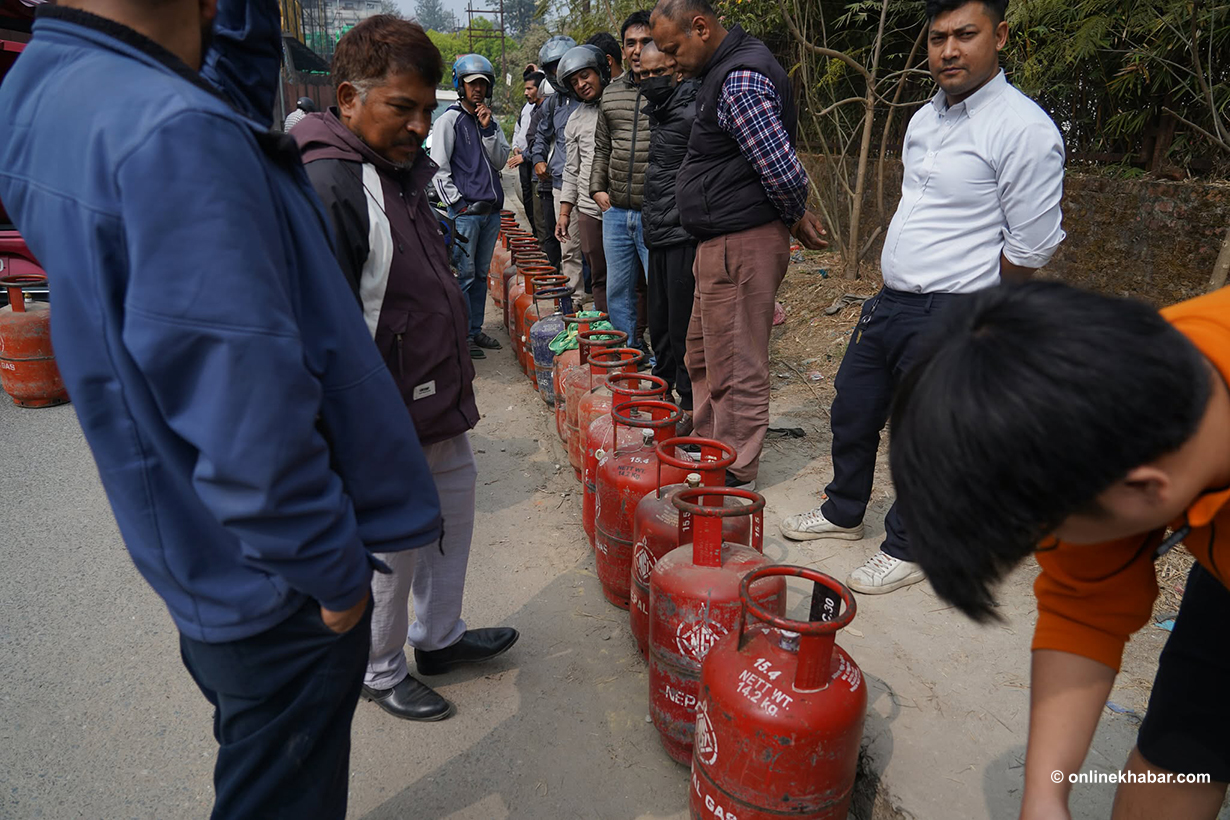 २८ फागुन, काठमाडौं । मध्यपूर्वको तनावले नेपालमा पनि खाना पकाउने ग्यास आपूर्ति प्रभावित भएको छ । कतिपय ग्यास बिक्री डिपो बन्द छन् । सीमित खुलेका डिपोहरुमा उपभोक्ताहरुको लामो लाइन देखिन्छ ।