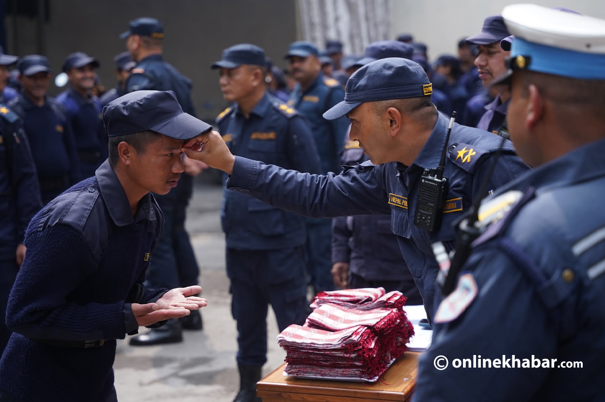 बिहीबार काठमाडौंको तीनकुनेस्थित प्रहरी वृत्तबाट काठमाडौंमा खटिएका निर्वाचन प्रहरीहरूलाई बिदाइ गरिएको हो । उनीहरूलाई टिका र खादा लगाएर प्रहरी अधिकारीहरूले बिदाइ गरेका हुन् ।