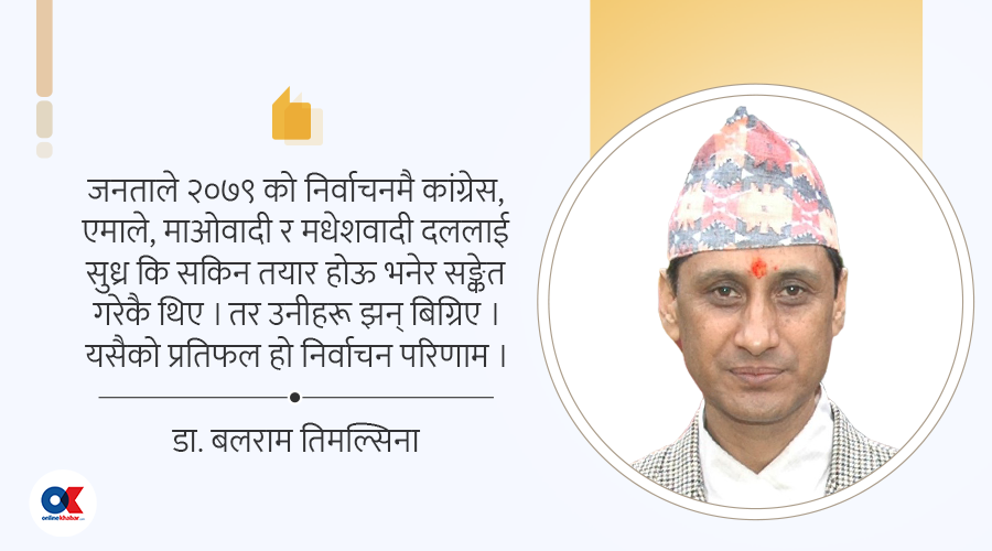 यी सबै बेथिति भोगेका जनताले २०७९ को निर्वाचनमा नै कांग्रेस, एमाले, तत्कालीन माओवादी र मधेशवादी दललाई सुध्र कि सकिन तयार होऊ भनेर सङ्केत गरेकै थिए । तर उनीहरू झन् बिग्रिए, सुध्रिएनन् ।
