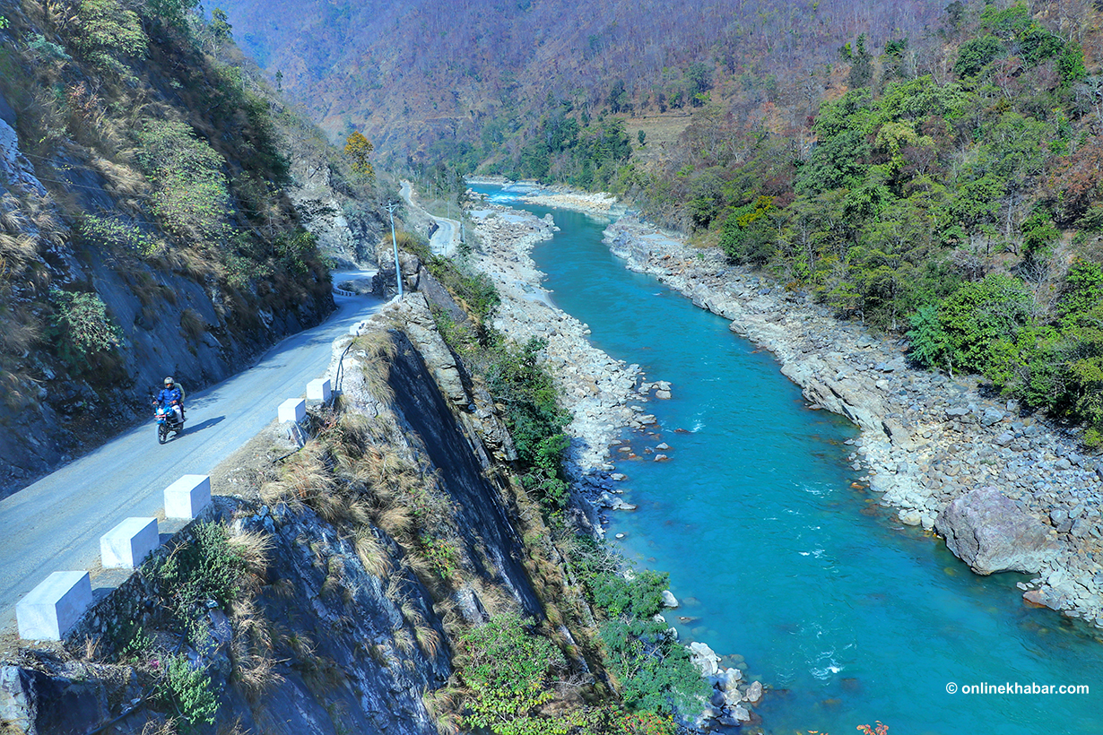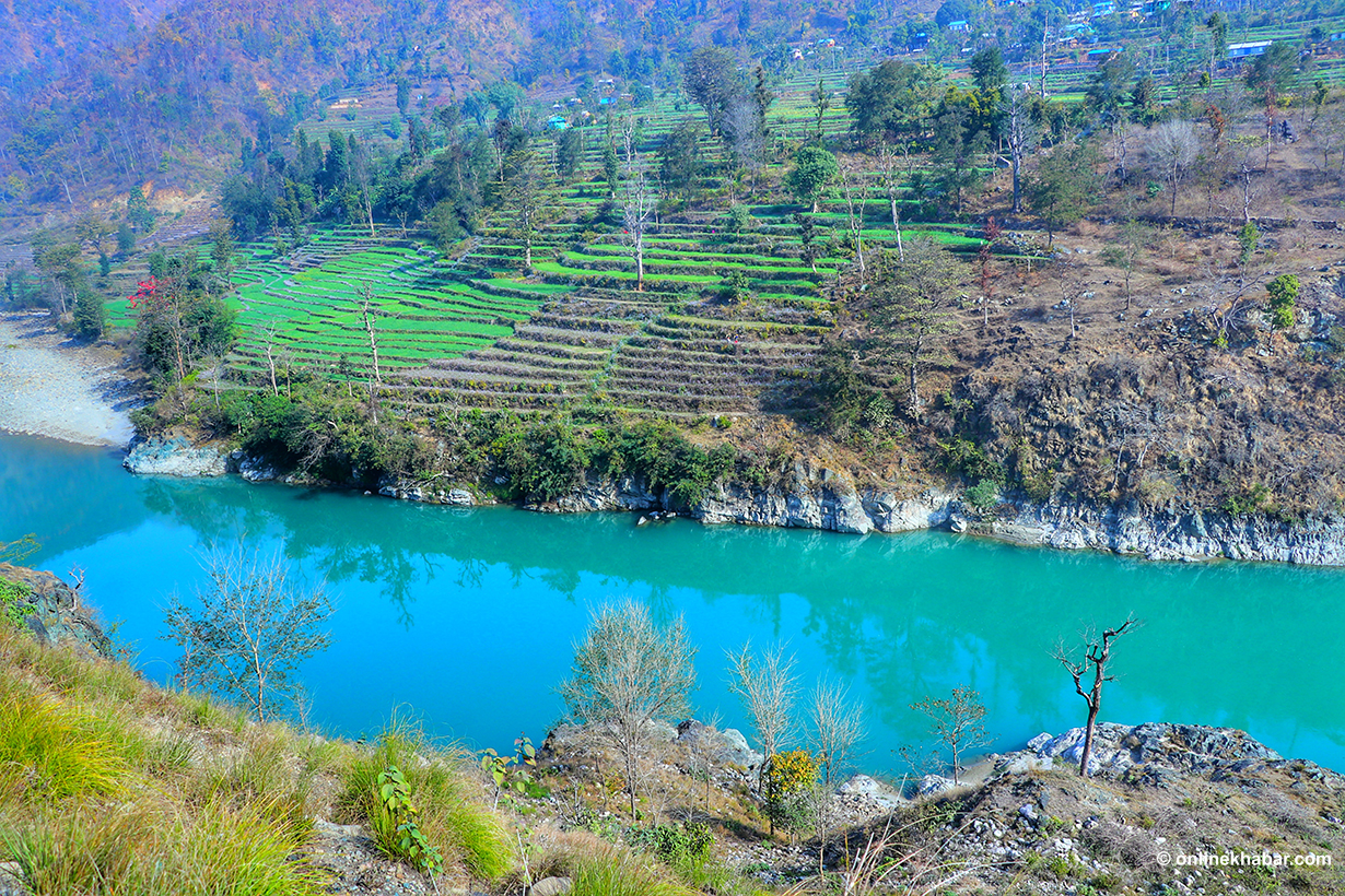 नदी किनारैमा बनेको सडकले दुर्गम पहाडी बस्तीलाई जोड्दै विकासको संकेत दिन्छ भने उब्जाउ जमिनले स्थानीय किसानको दैनिकी झल्काउँछ । भेरीको पानीले सिंचित यी खेतहरूमा मौसमी बालीहरू हरियाली भएर फक्रिएका छन् ।
