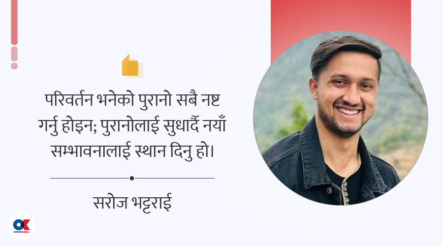 परिवर्तन भनेको पुरानो सबै नष्ट गर्नु होइन; पुरानोलाई सुधार्दै नयाँ सम्भावनालाई स्थान दिनु हो। नेपालको राजनीति अहिले एउटा संक्रमणकालीन मोडमा पुगेको छ। पुरानो राजनीतिक संरचना अझै पूर्ण रूपमा समाप्त भएको छैन, तर नयाँ शक्ति पनि पूर्ण रूपमा स्थापित भइसकेको छैन। यही बीचको अवस्था लोकतन्त्रका लागि सबैभन्दा संवेदनशील र सम्भावनायुक्त समय हुन्छ।