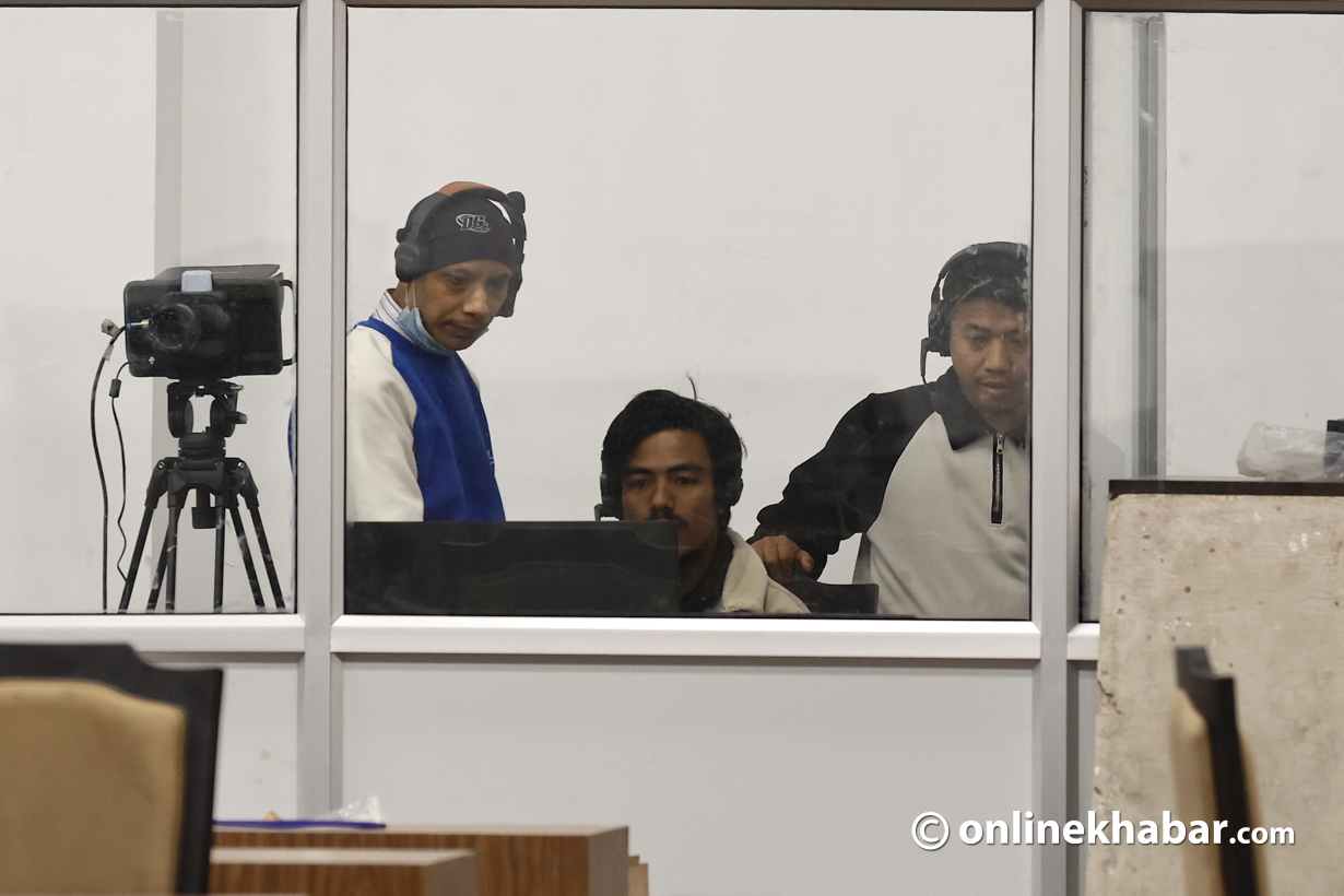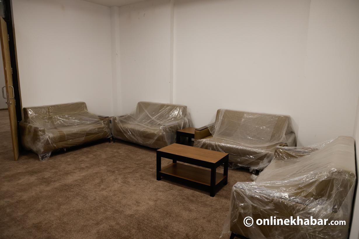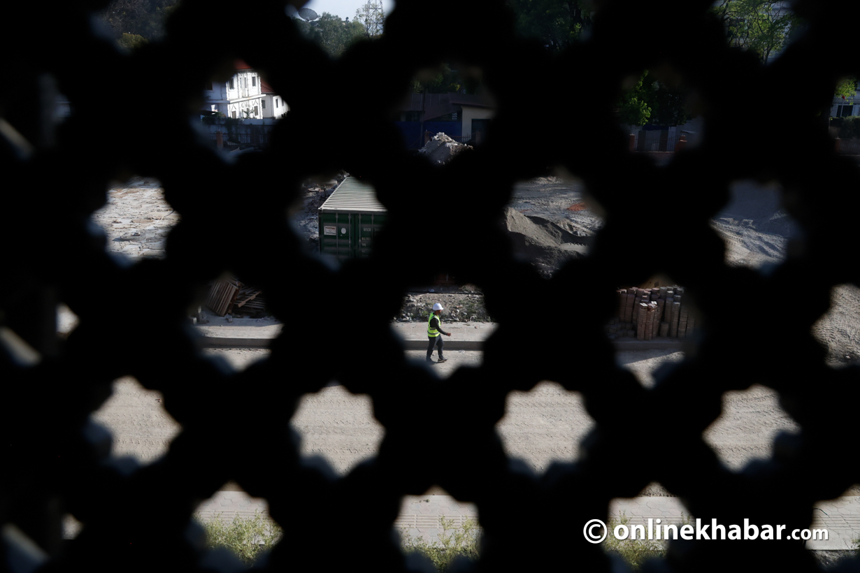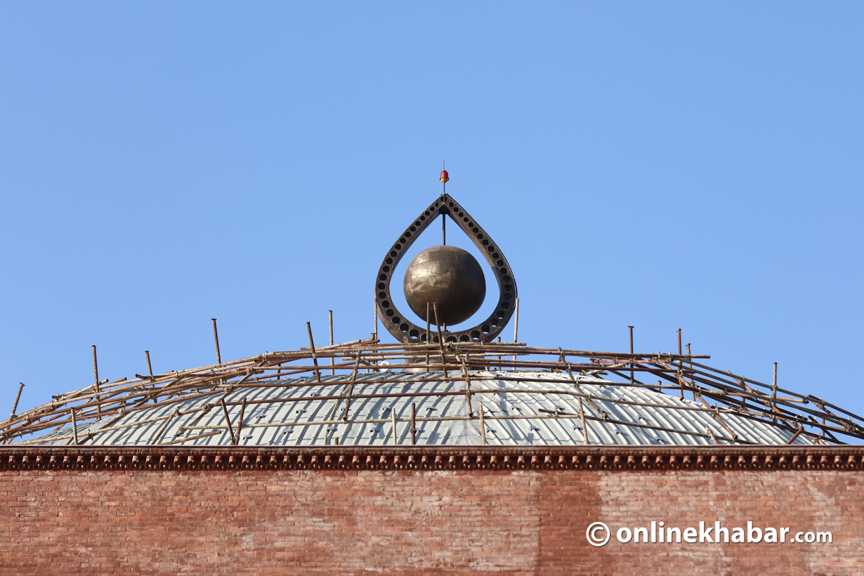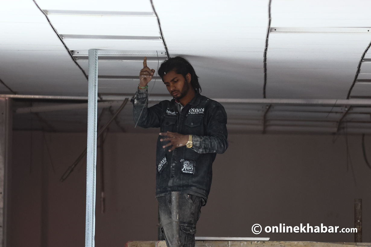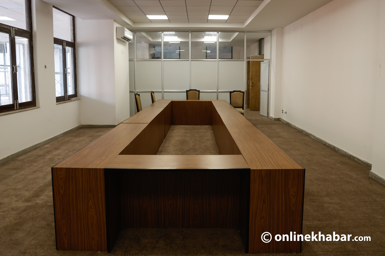- सिंहदरबारभित्र निर्माणाधीन नयाँ संसद् भवन पूर्ण नभएपछि शपथका लागि कुर्सी, बत्ती र माइक जडान गर्ने काम भइरहेको छ।