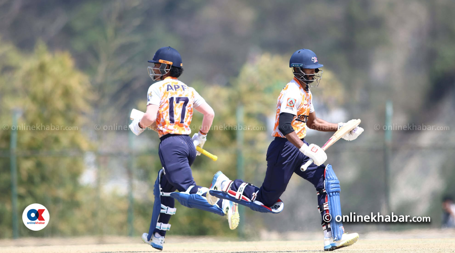 एपीएफविरुद्ध पुलिसका चार ब्याटरले अर्धशतक बनाए । ओपनर दिनेश खरेल, शंकर राना, कप्तान आरिफ शेख र दिल्साद अलीले अर्धशतक बनाए ।