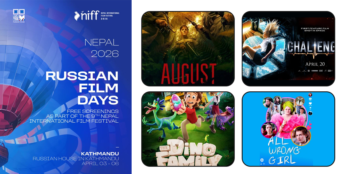 काठमाडौं । चैत १९ देखि २३ सम्म हुन लागेको नवौं संस्करणको नेपाल अन्तर्राष्ट्रिय चलचित्र महोत्सव (निफ) मा ५ रुसी फिल्मको प्रदर्शन गरिने भएको छ । ‘रसियन फिल्म डेज नेपाल २०२६’ कार्यक्रम अन्तर्गत फिल्म देखाइने भएको हो ।