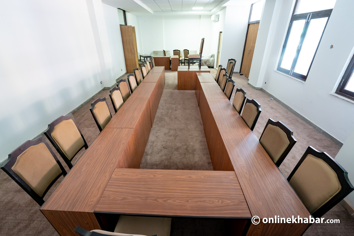 हलमा प्रवेश गर्दा बित्तिकै सभामुखको आसन, संसद्का महासचिव र अन्य कर्मचारीका राखिएका चेयर कुर्सी टेबल देख्न सकिन्छ । सांसदहरूका लागि २८० वटा कुर्सी राखिएका छन् ।