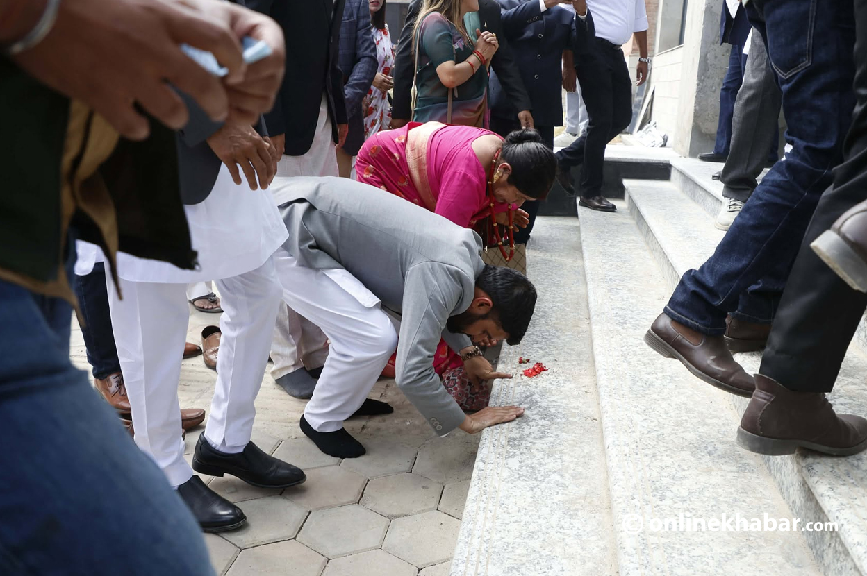 - शपथ ग्रहण अघि केही सांसदहरूले मूल प्रवेशद्वारमा जुत्ता खोलेर शीर नुहाएर ढोगेका थिए।