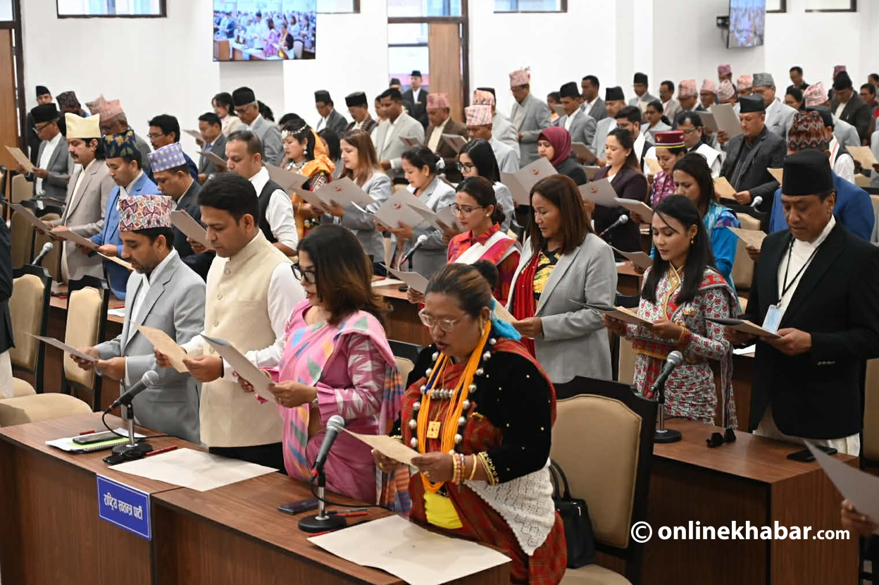 उनीहरूलाई सिंहदरबारस्थित नवनिर्मित संघीय संसद्को अस्थायी रुपमा बनेको बहुउद्देश्यीय हलमा शपथ ग्रहण गराइएको हो । संघीय संसद् सचिवालयका अनुसार, अब संसद्का केही प्रारम्भिक बैठक पनि सोही हलमा बस्नेछ ।
