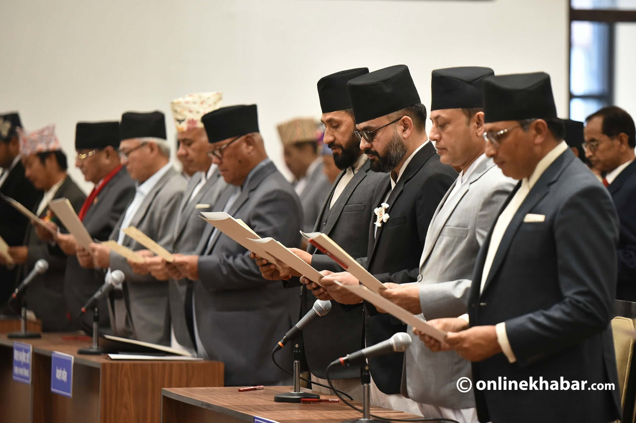 Generated by OK AI. Editorially reviewed.- प्रतिनिधिसभाका नवनिर्वाचित सांसदले बिहीबार सिंहदरबारभित्रको नयाँ सांसद भवनमा सपथ ग्रहण गरेका छन्।