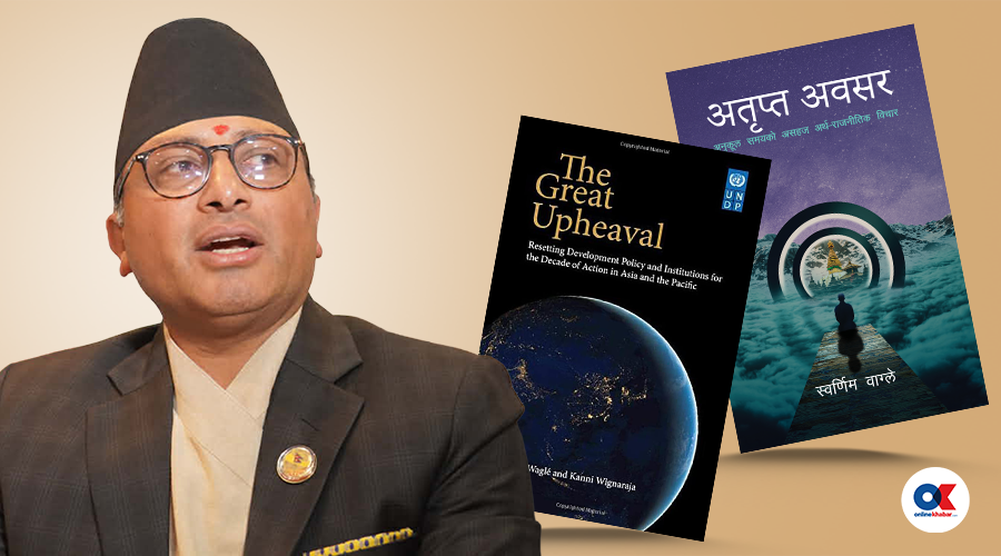 १३ चैत, काठमाडौं । सन् २०२२ मा डा. स्वर्णिम वाग्लेले दुइटा पुस्तक प्रकाशित गरे, एउटा आफैंले लेखेको ‘अतृप्त अवसर’ र अर्को सम्पादन गरेको ‘द ग्रेट अपहिभल’ (महान उथलपुथल) ।